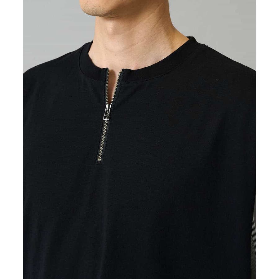 【洗濯機で洗える】ハーフジップバックシャン切替長袖カットソー ロンT