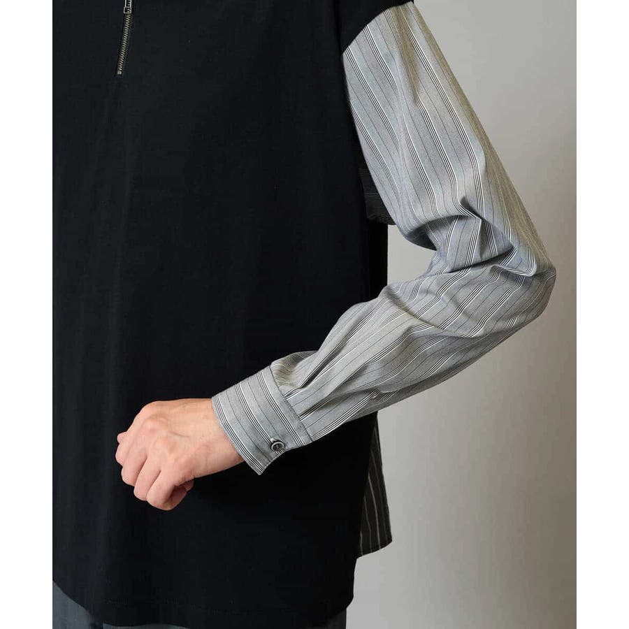 カットソーとシャツをMIXした絶妙バランスの大人きれいめ切り替えカットソー◆