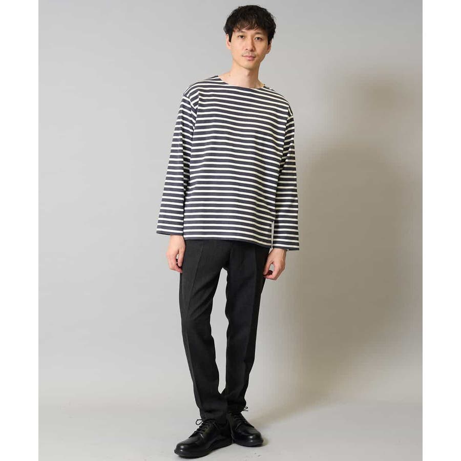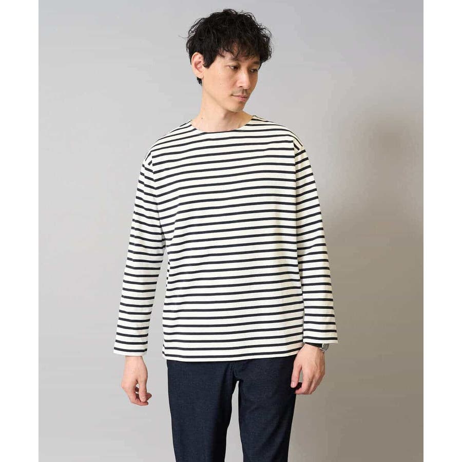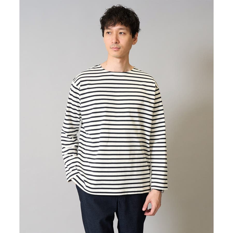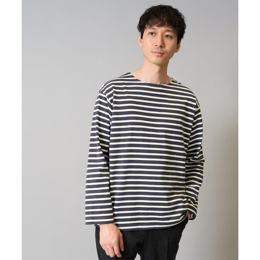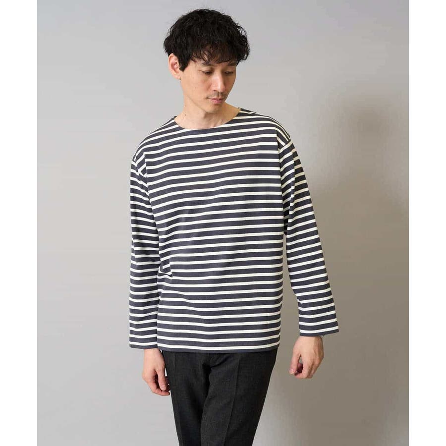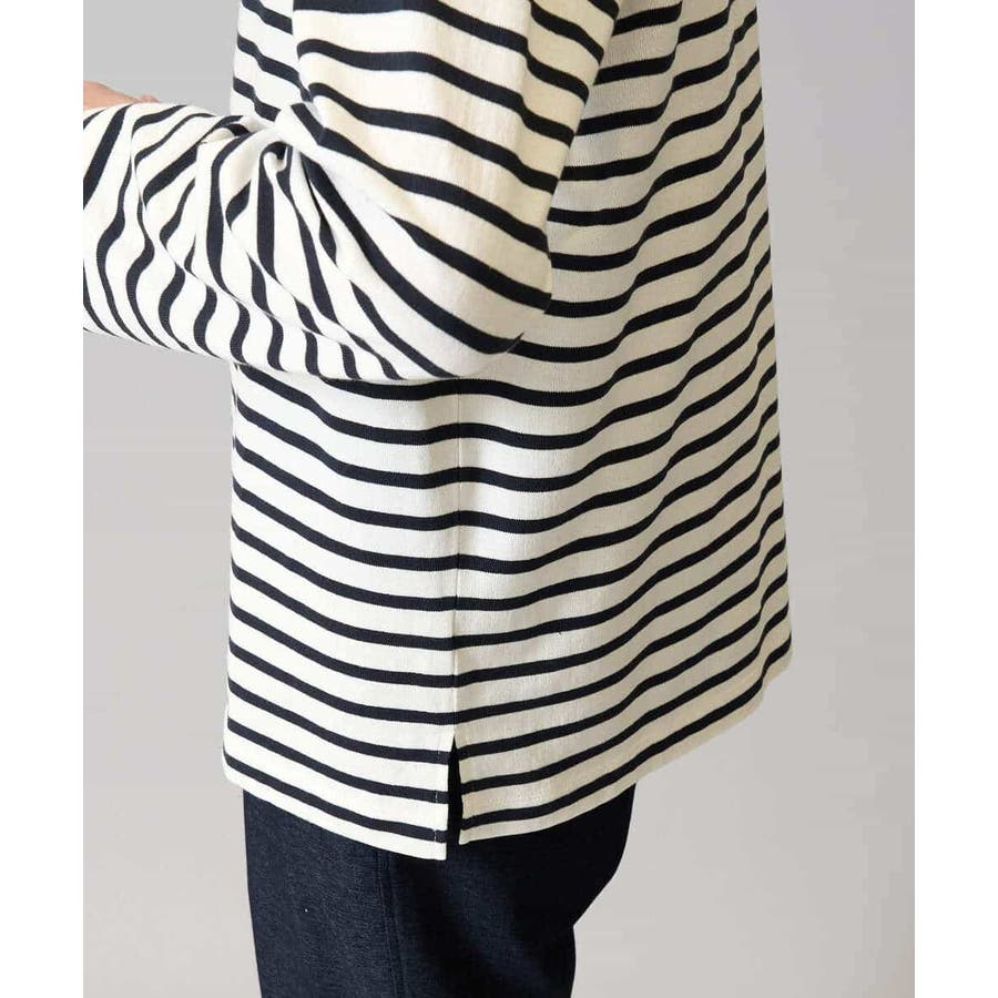 【綿100%】ボーダーワイドシルエットカットソー 長袖 ロンT