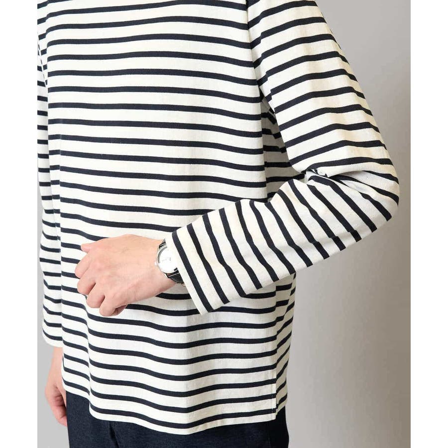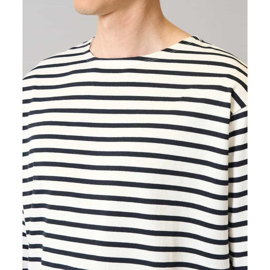 通常のボートネックより首回りの横幅を狭くすることで、インナーを気にせず1枚でも着用しやすい仕様に。