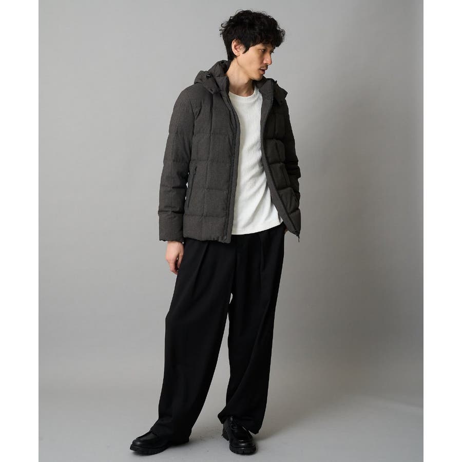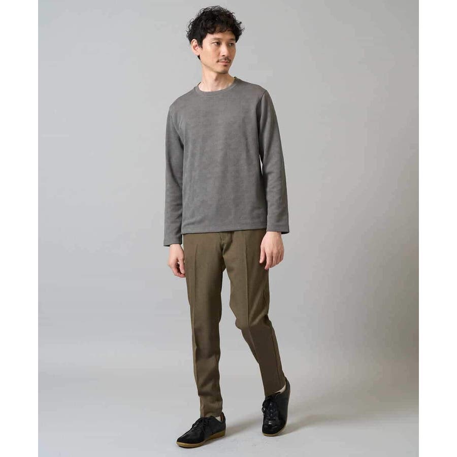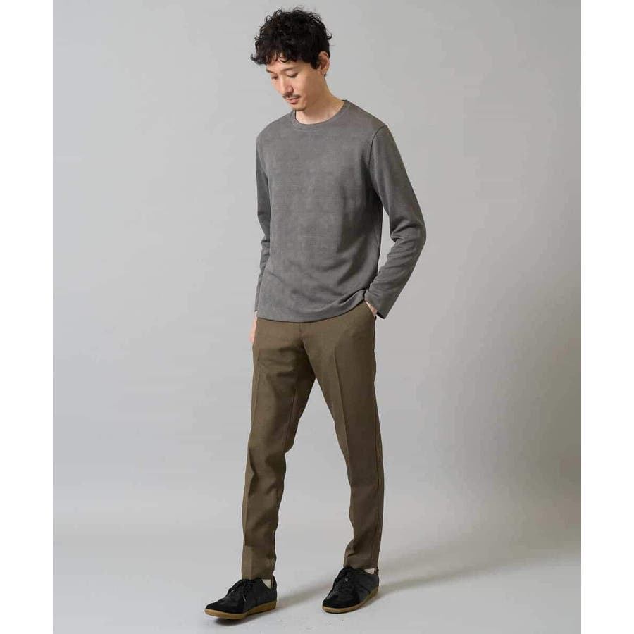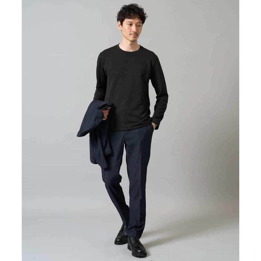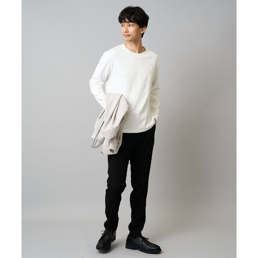 ボトムはONスタイルであればスラックス合わせ、OFFスタイルであればややゆとりのあるパンツとあわせでもバランスが良いスタイリングに。
