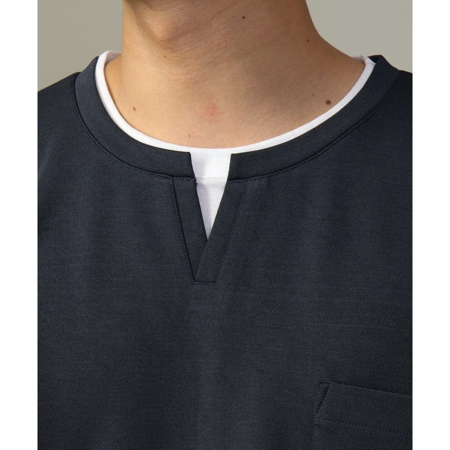 【きれいめで楽チン】キーネックフェイクレイヤードセミワイドカットソー