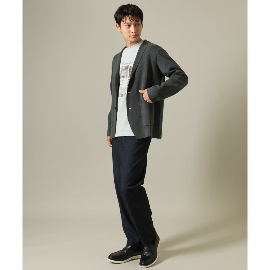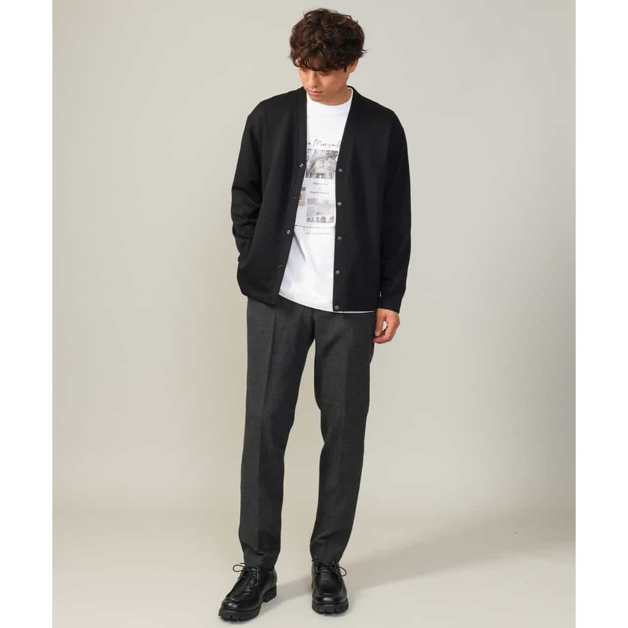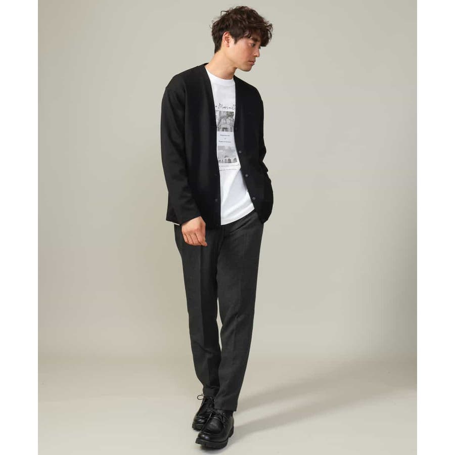 ボトムはきれい目な雰囲気であればスラックスデザイン、カジュアルに着こなすのであればゆとりのあるタック入りパンツもオススメです。