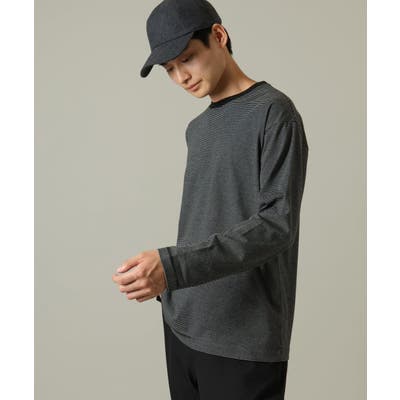 【万能インナー】細ボーダーセミワイドシルエットロングTシャツ