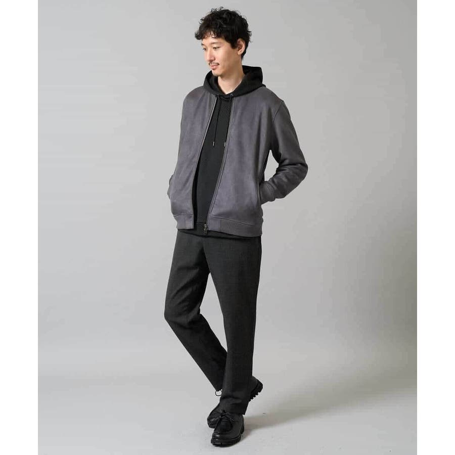 ボトムはきれい目スタイルであればスラックス合わせ、カジュアルスタイルであればゆとりのあるパンツとあわせるとバランスが良いコーディネートが完成。