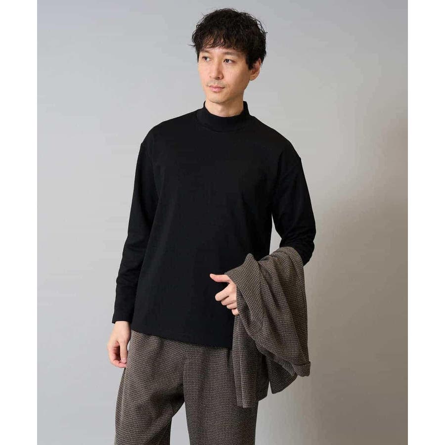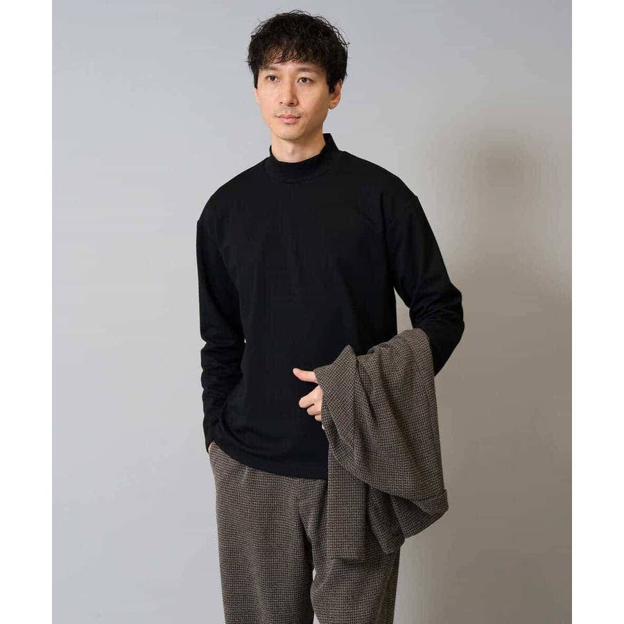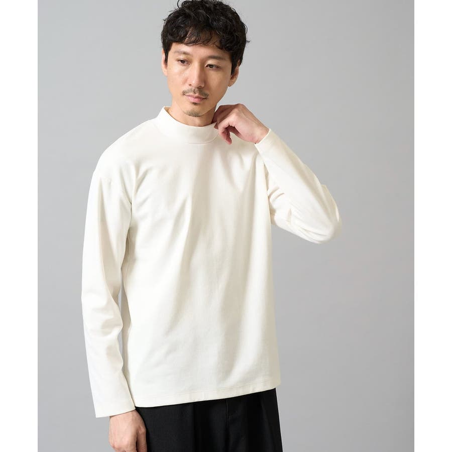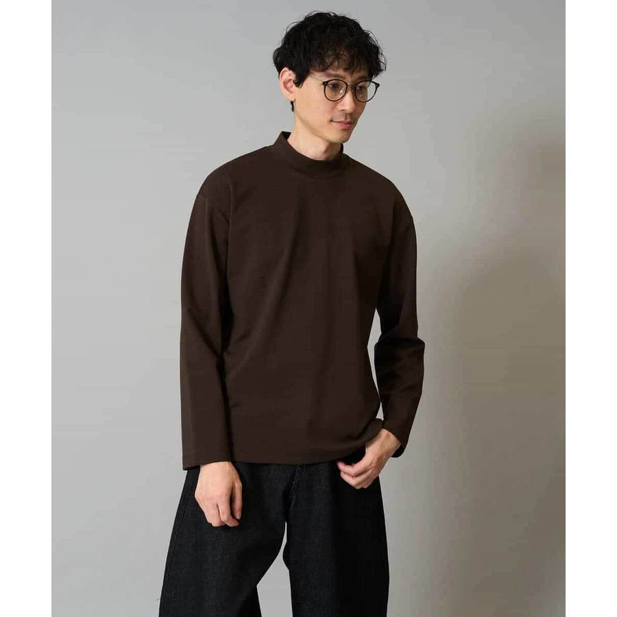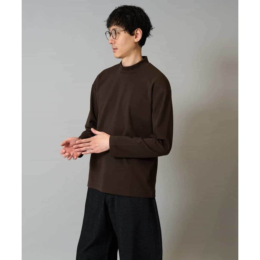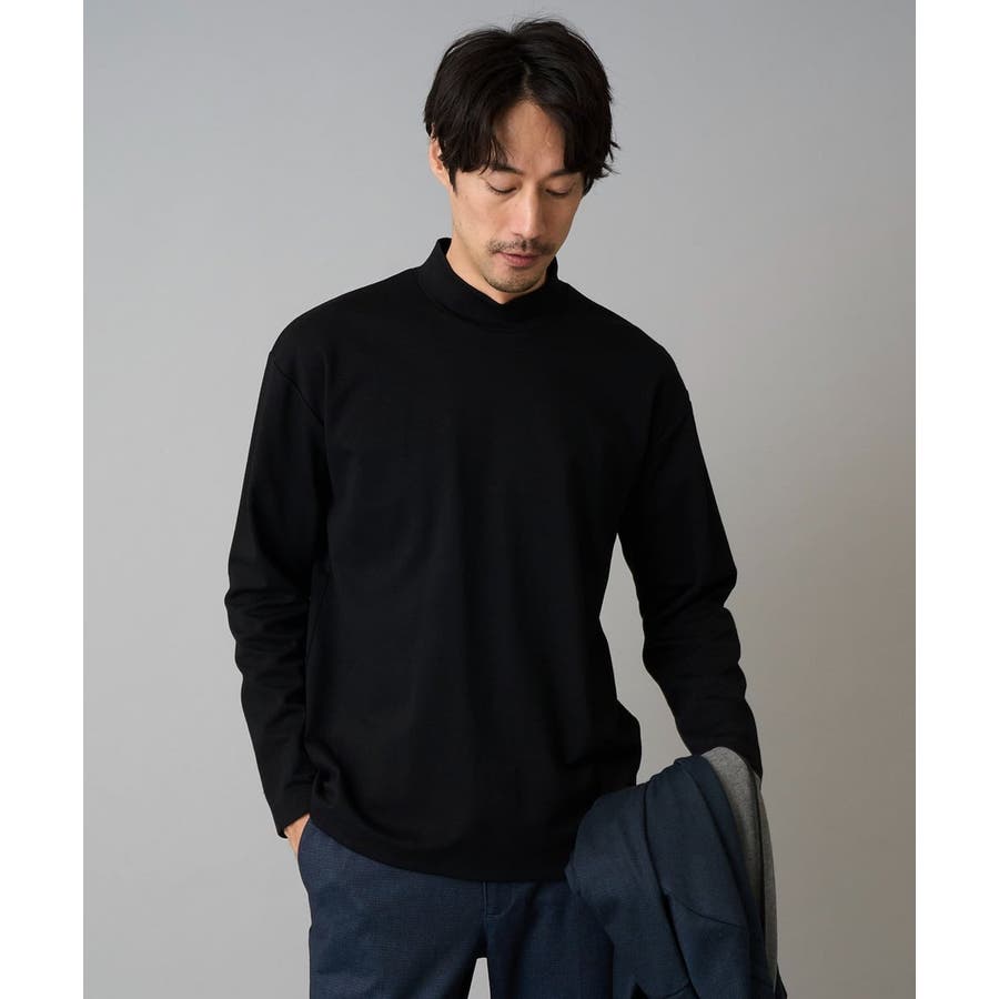 どんなアイテムにも合わせやすいシンプルなモックネックカットソー。