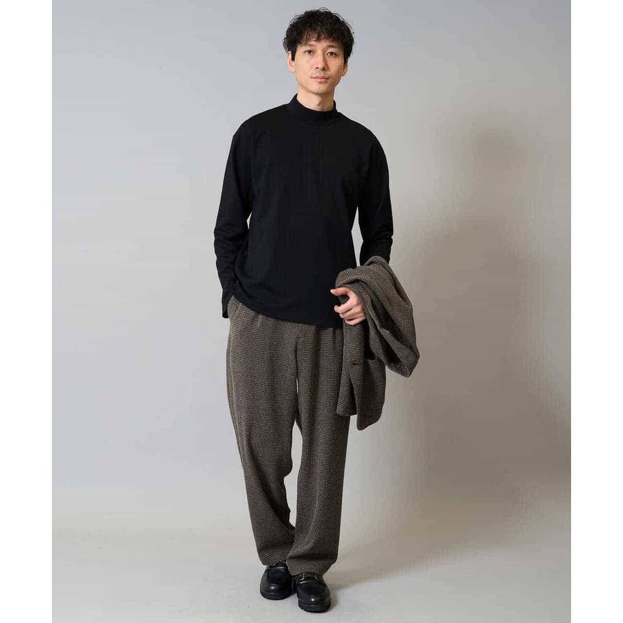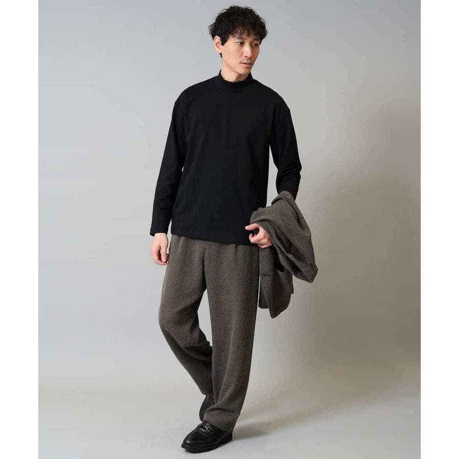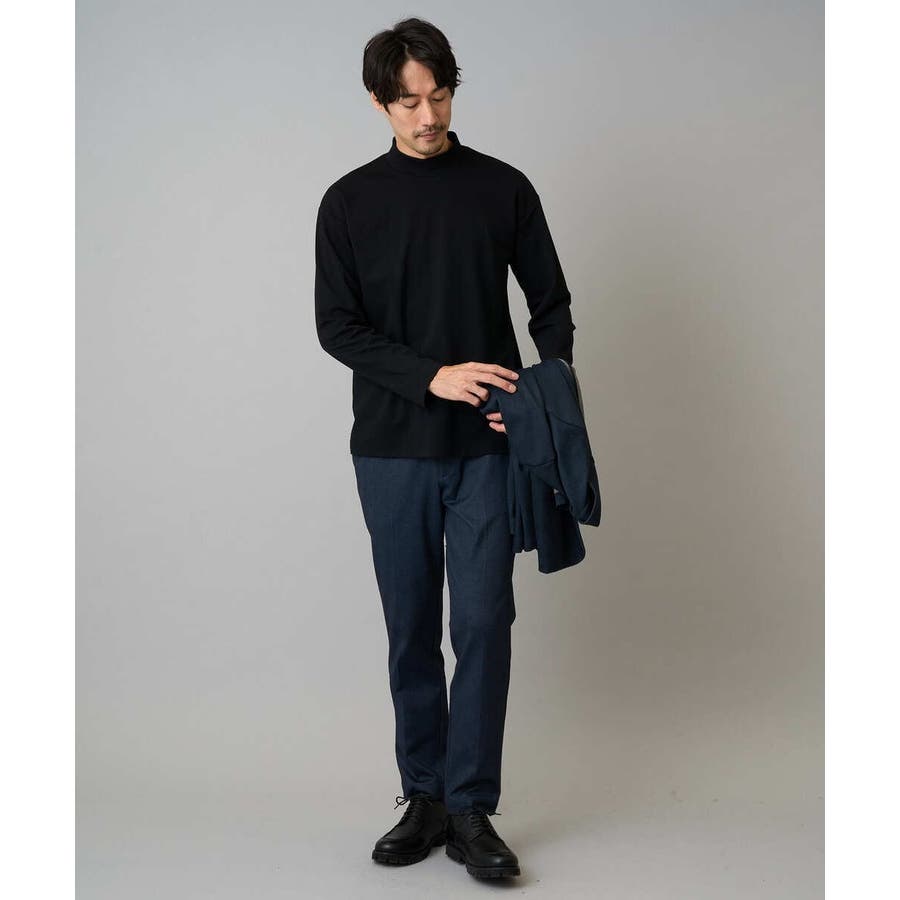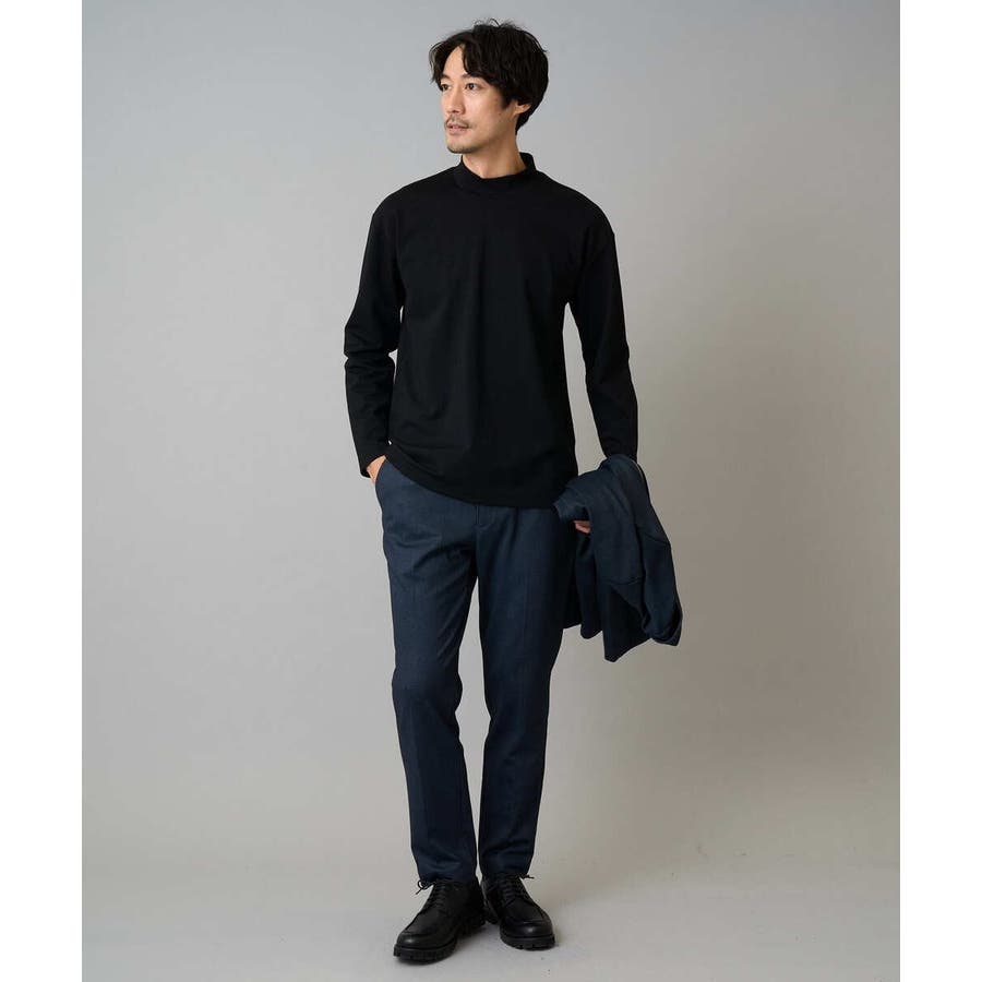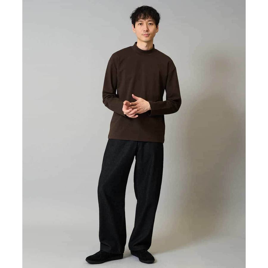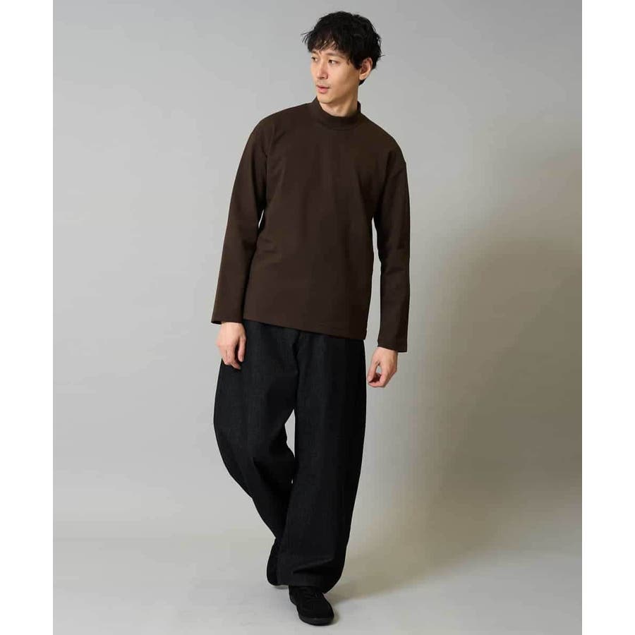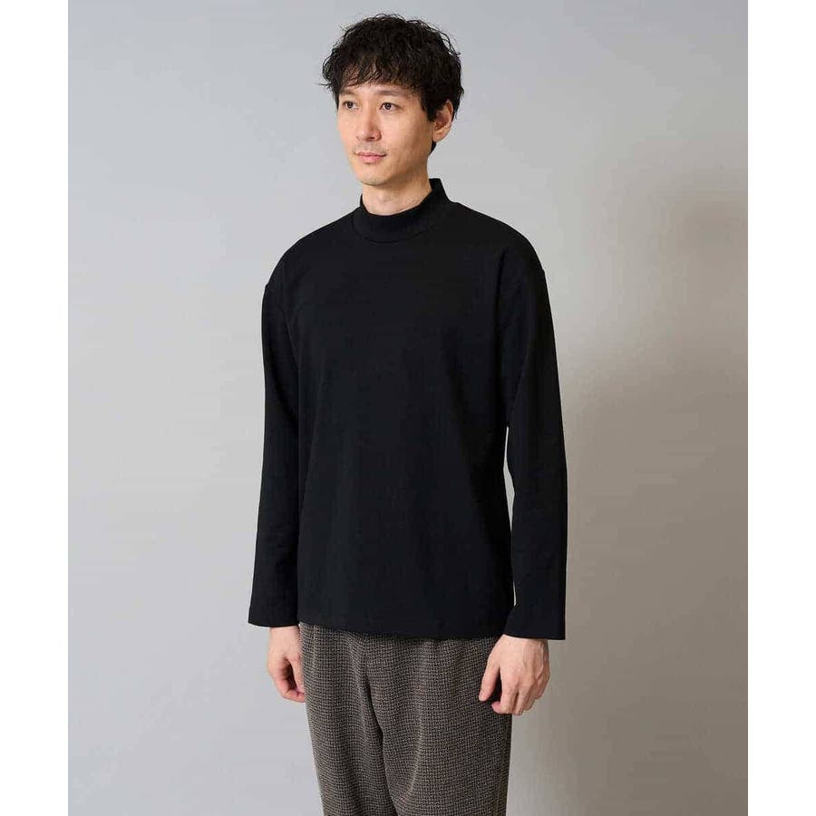 どんなアイテムにも合わせやすいシンプルなモックネックカットソー。