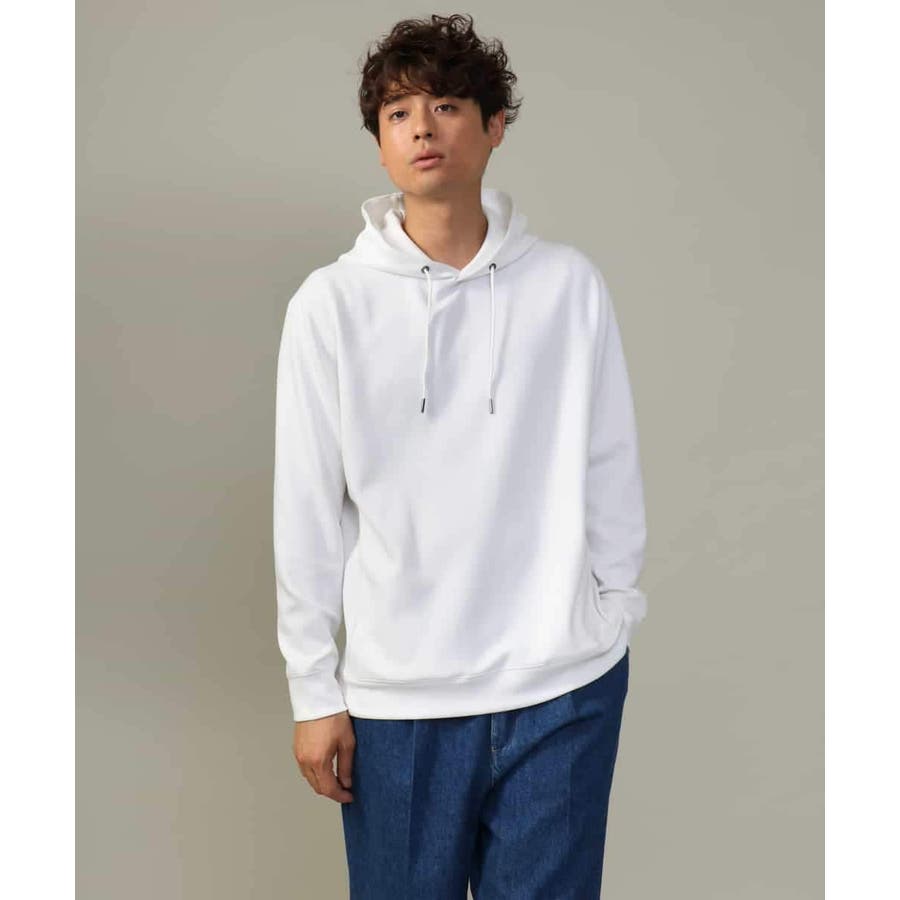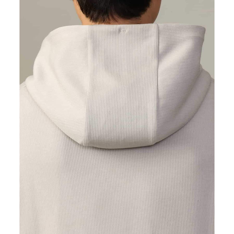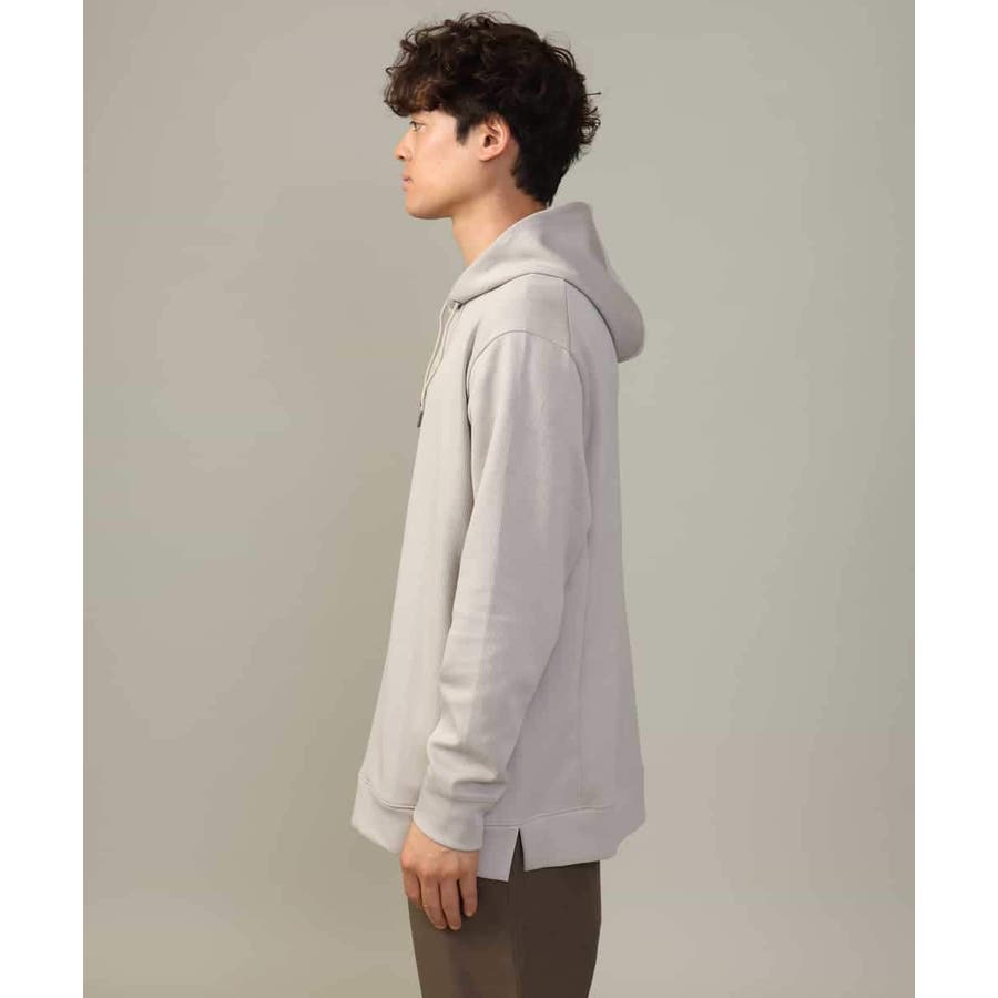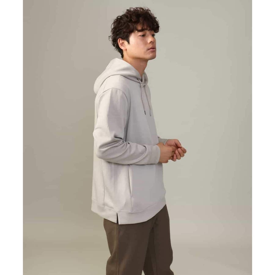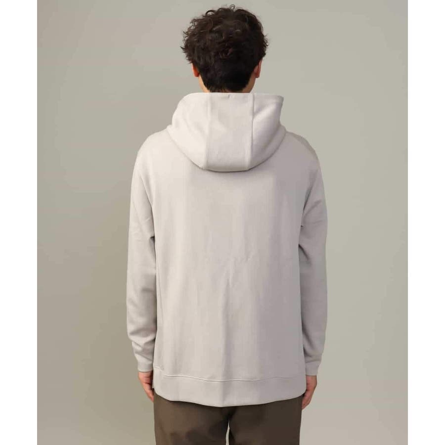 フード部分もステッチレスにすることでよりクリーンな印象になり、シームポケットを採用することで、スウェットパーカーにはないきれいめで大人らしいパーカーに仕上げました。