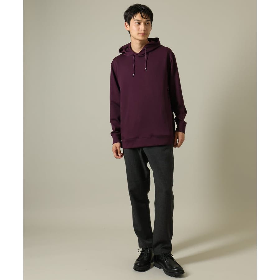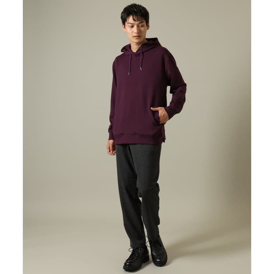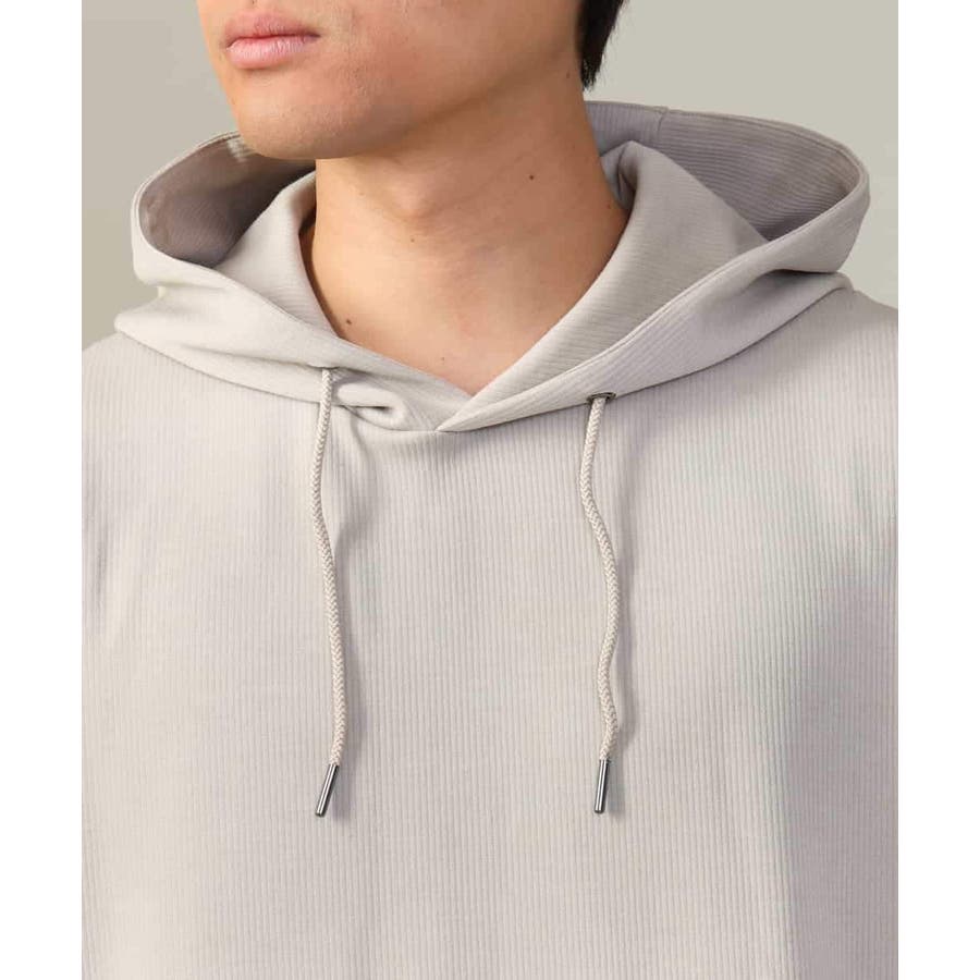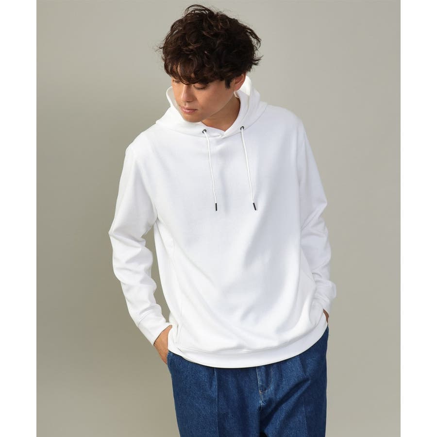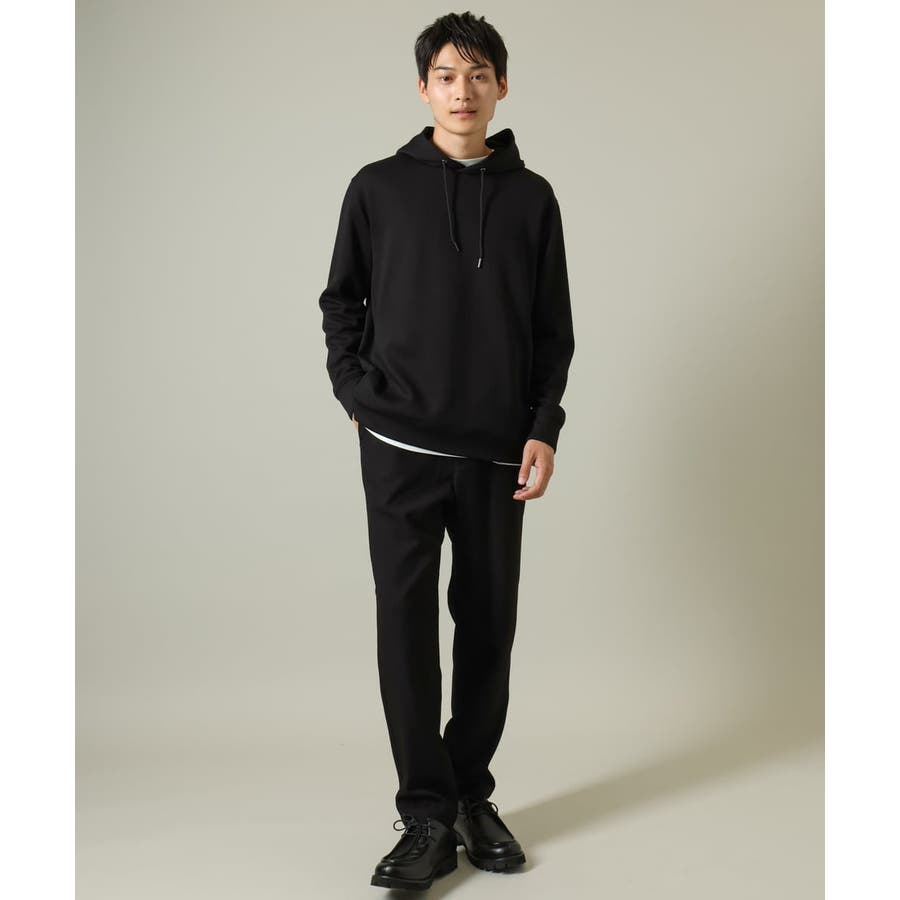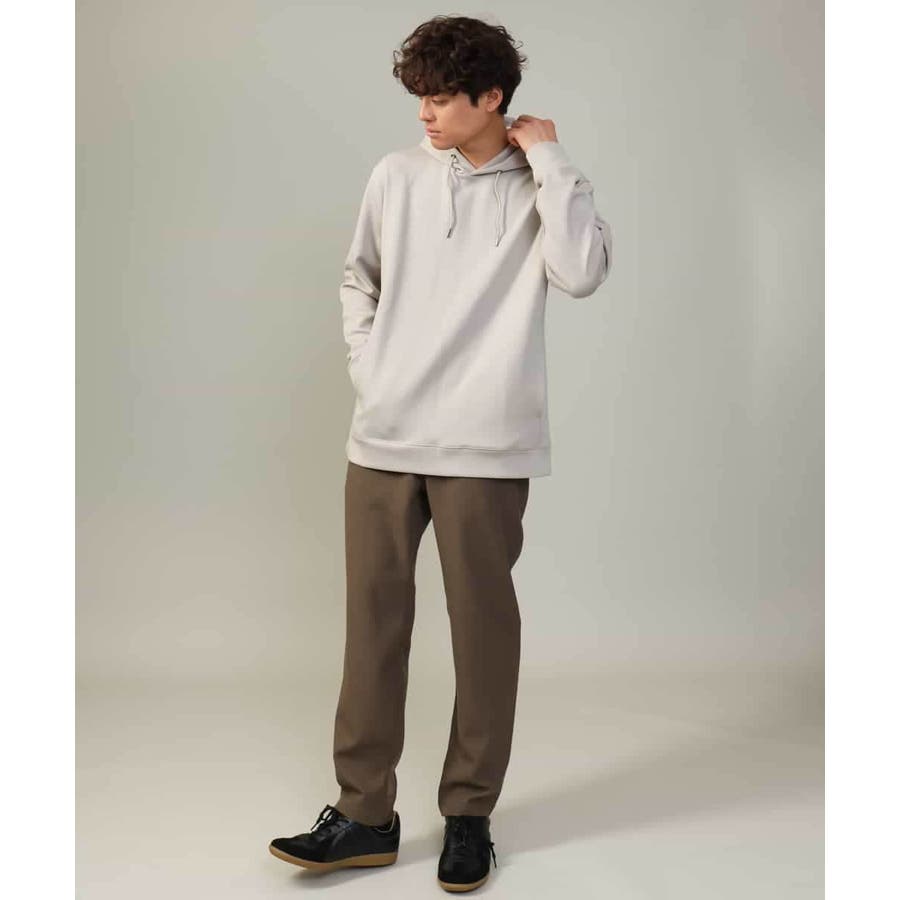 フード部分もステッチレスにすることでよりクリーンな印象になり、シームポケットを採用することで、スウェットパーカーにはないきれいめで大人らしいパーカーに仕上げました。