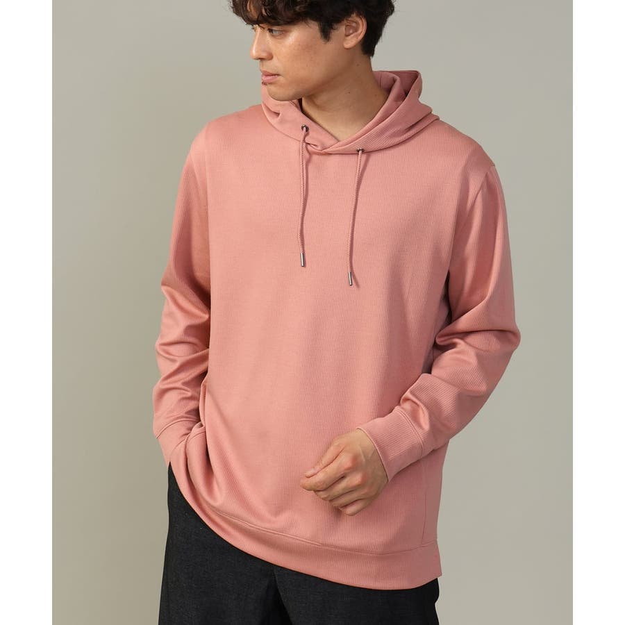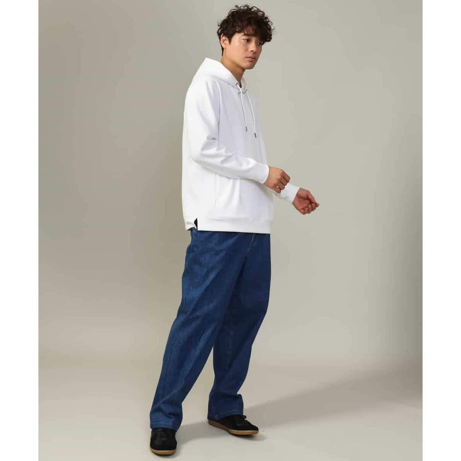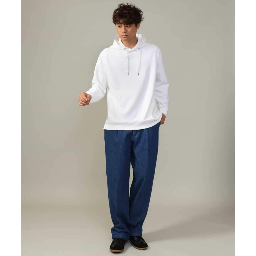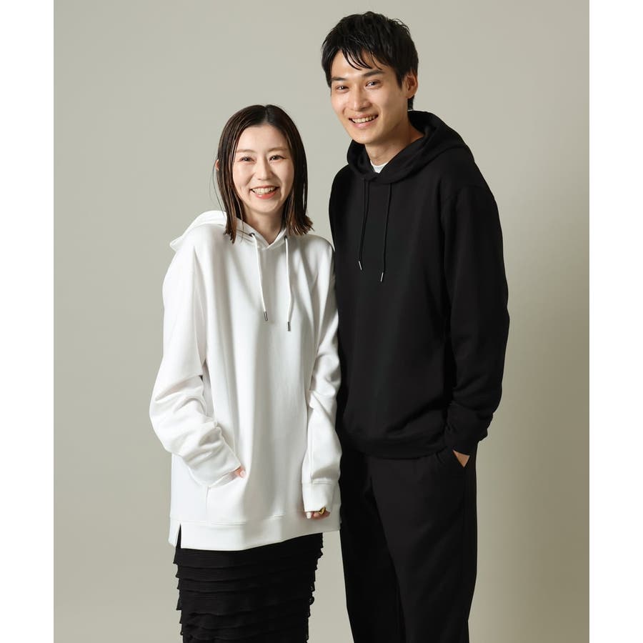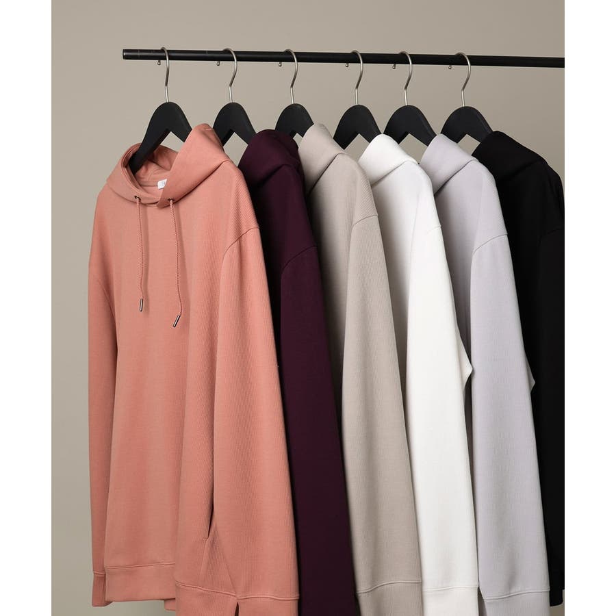 フード部分もステッチレスにすることでよりクリーンな印象になり、シームポケットを採用することで、スウェットパーカーにはないきれいめで大人らしいパーカーに仕上げました。