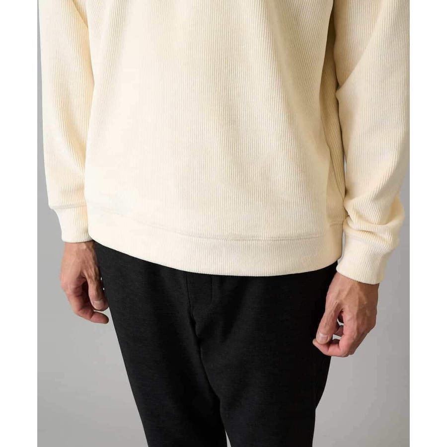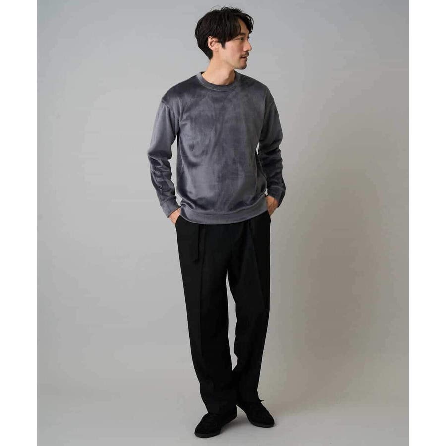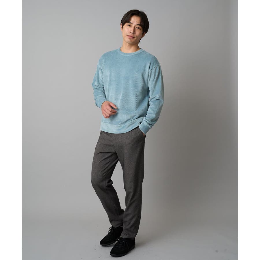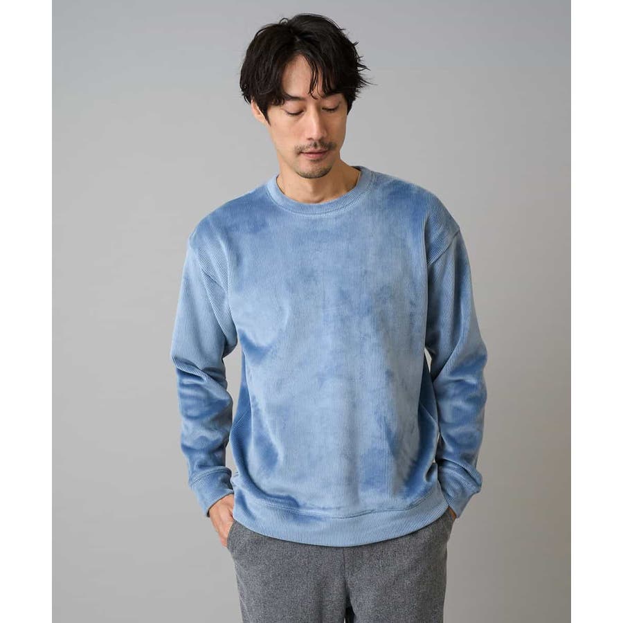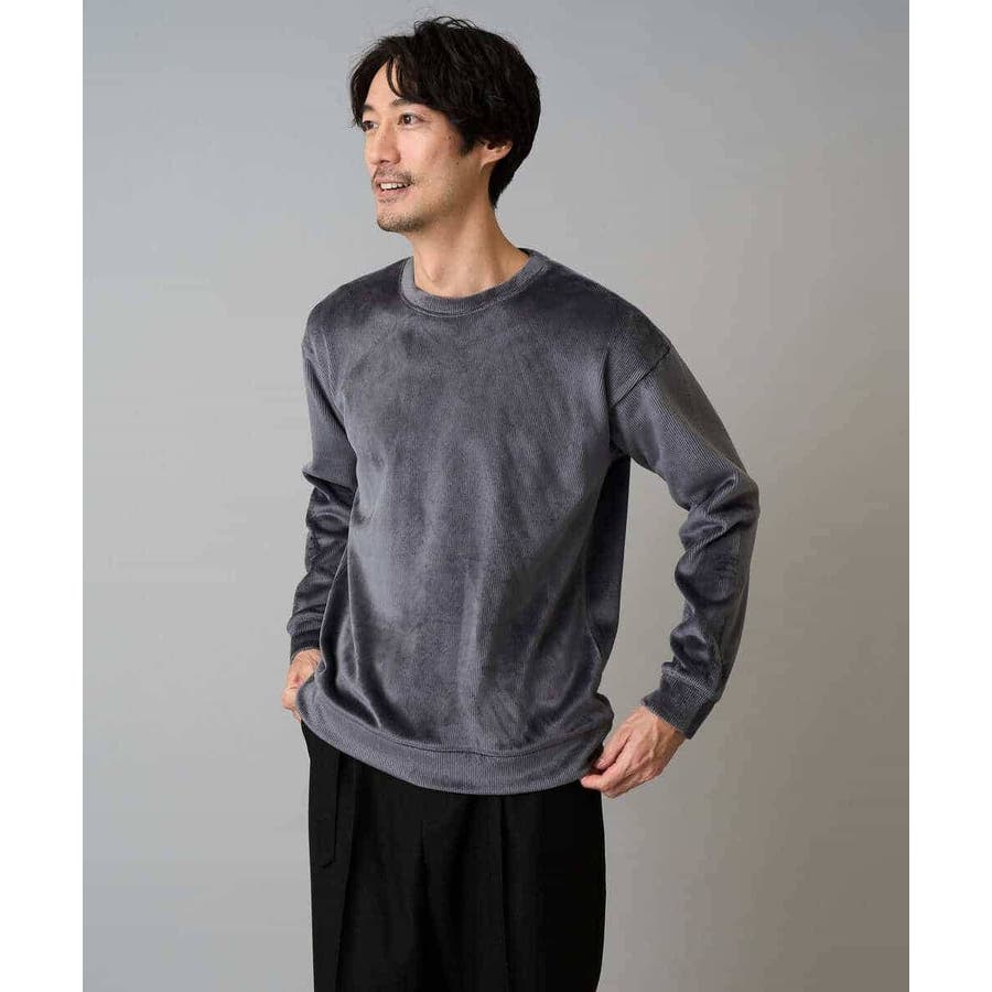 ジャージーコーデュロイ素材を使用したプルオーバー。