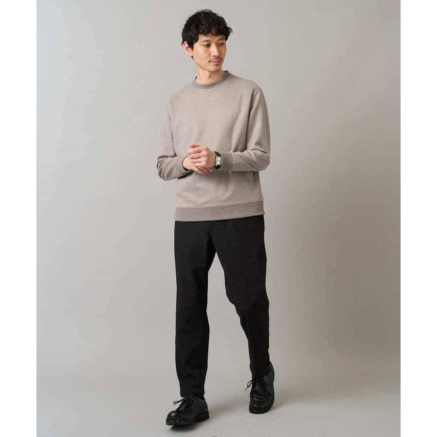 スウェットと言えば裏毛のカジュアル素材が定番ですが、より大人の方向けに上品な素材感できれいめにまとまるので、女性からも好印象で人気の高いアイテム。