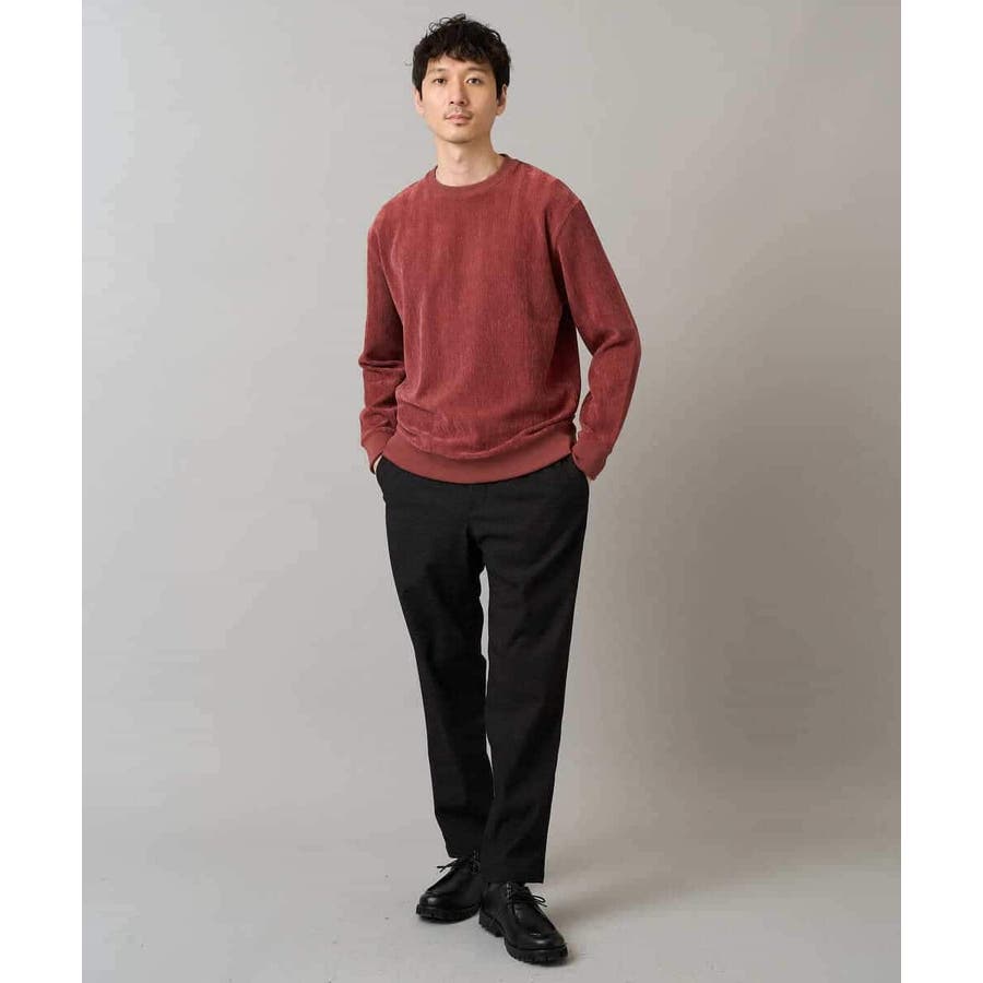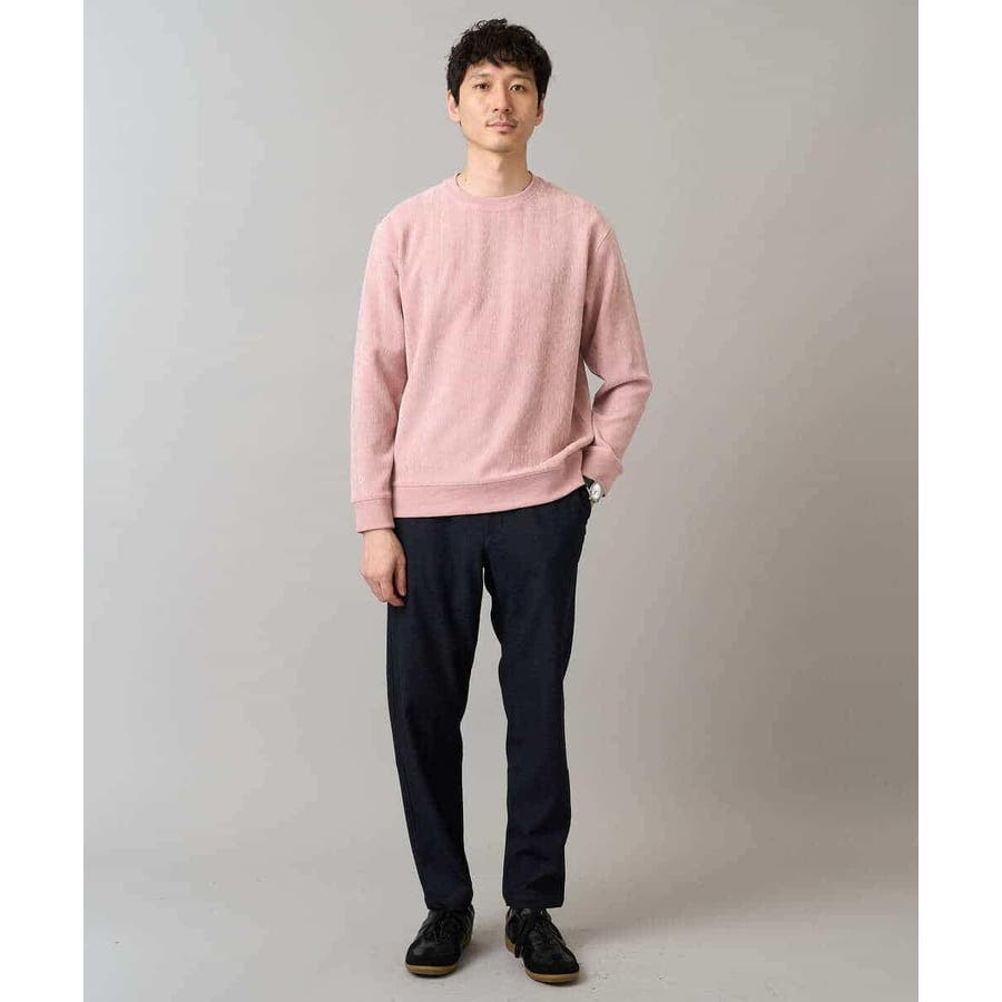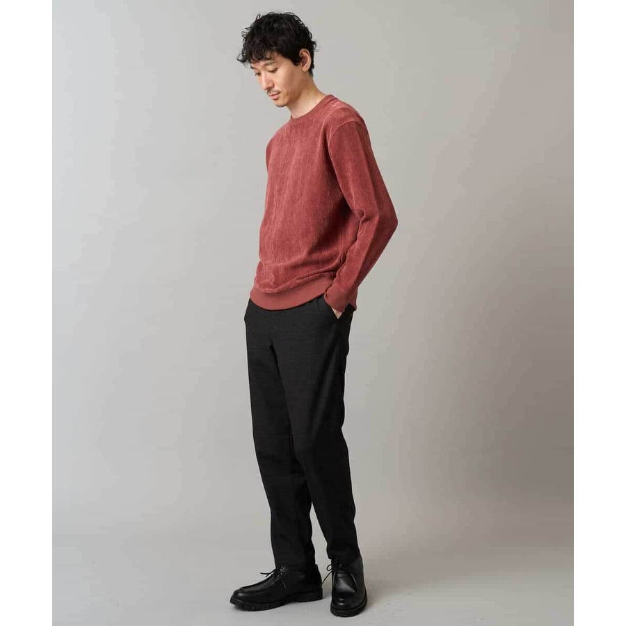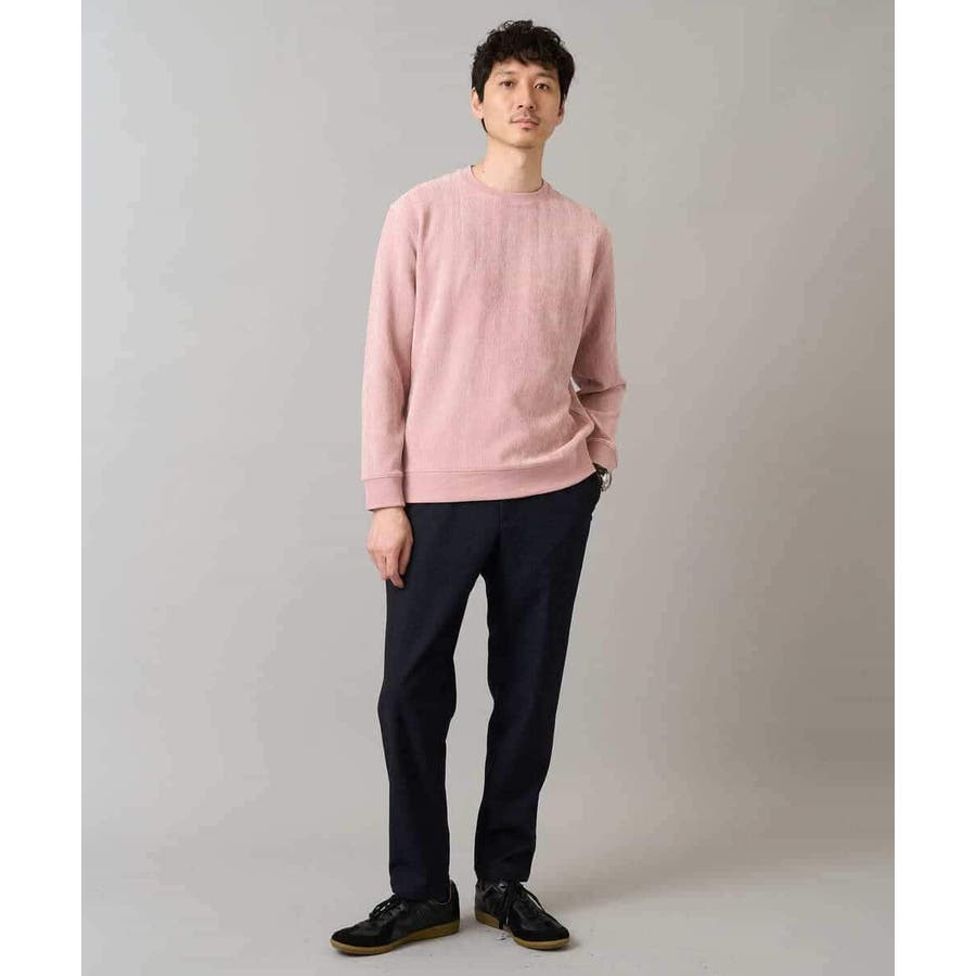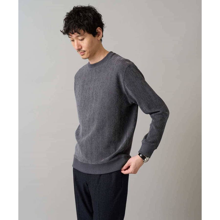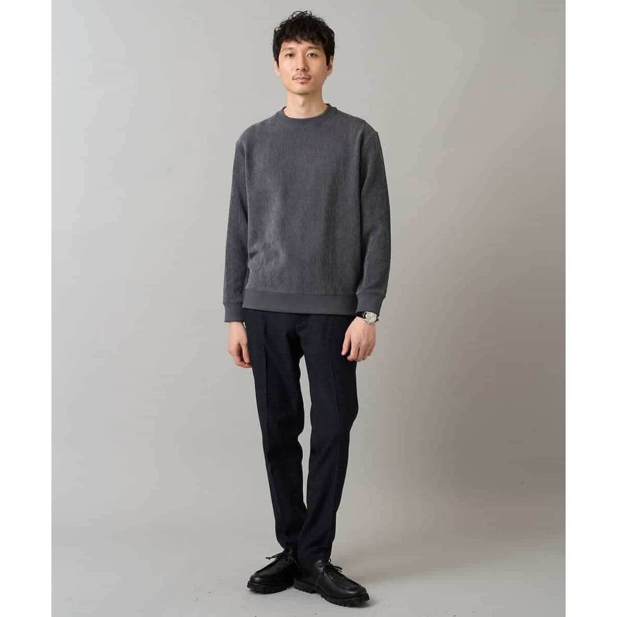 スウェットと言えば裏毛のカジュアル素材が定番ですが、より大人の方向けに上品な素材感できれいめにまとまるので、女性からも好印象で人気の高いアイテム。