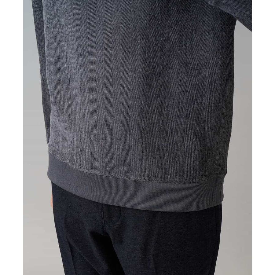 モール糸のさり気ないヘリンボーン柄が入ったジャージー素材を使用。