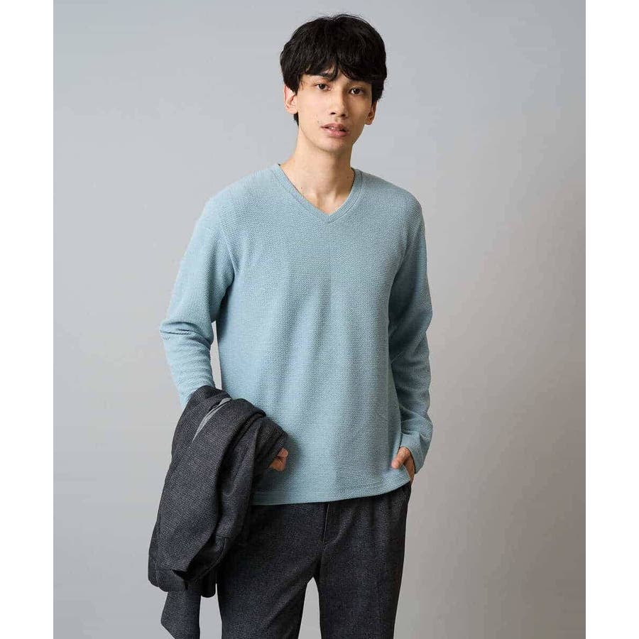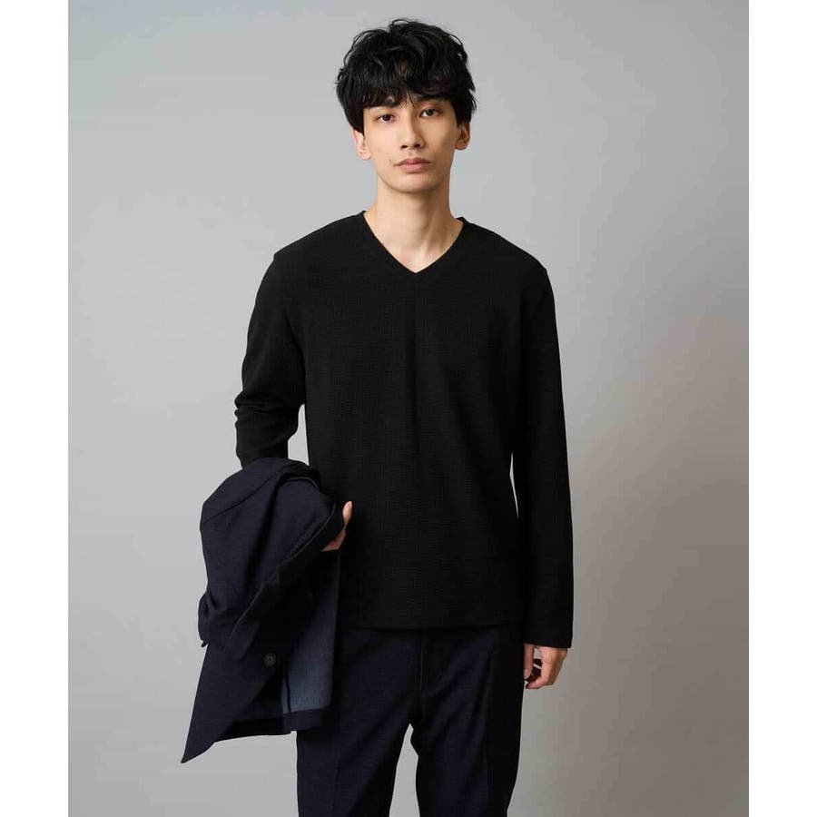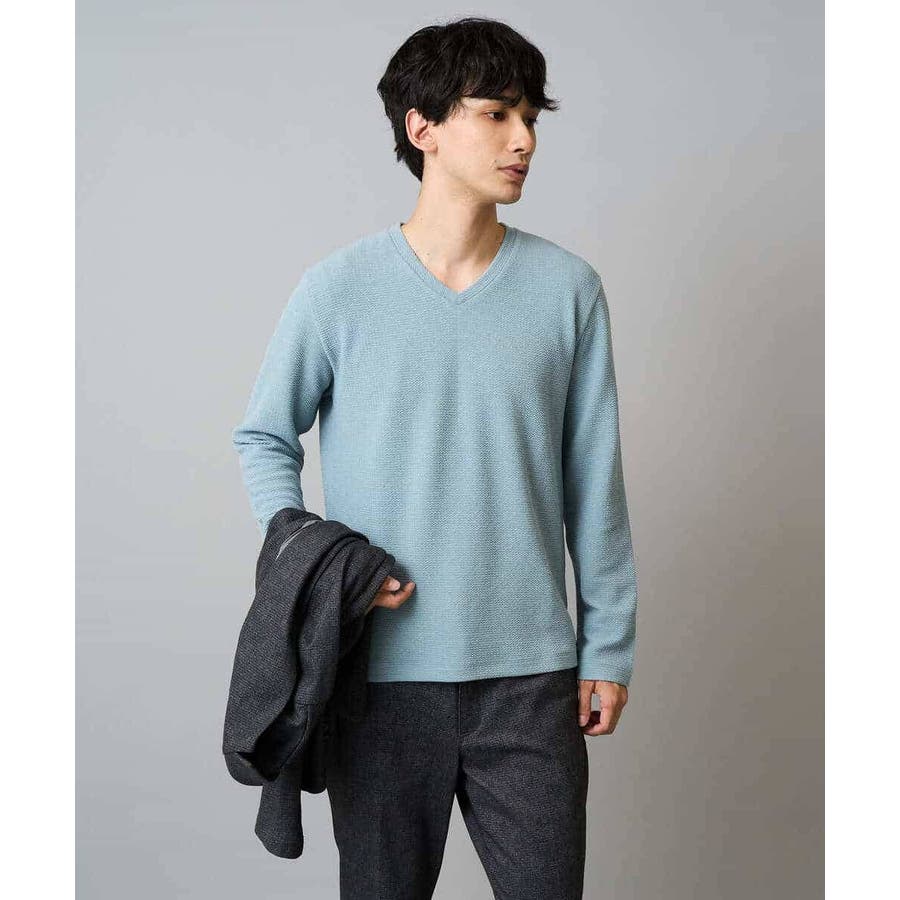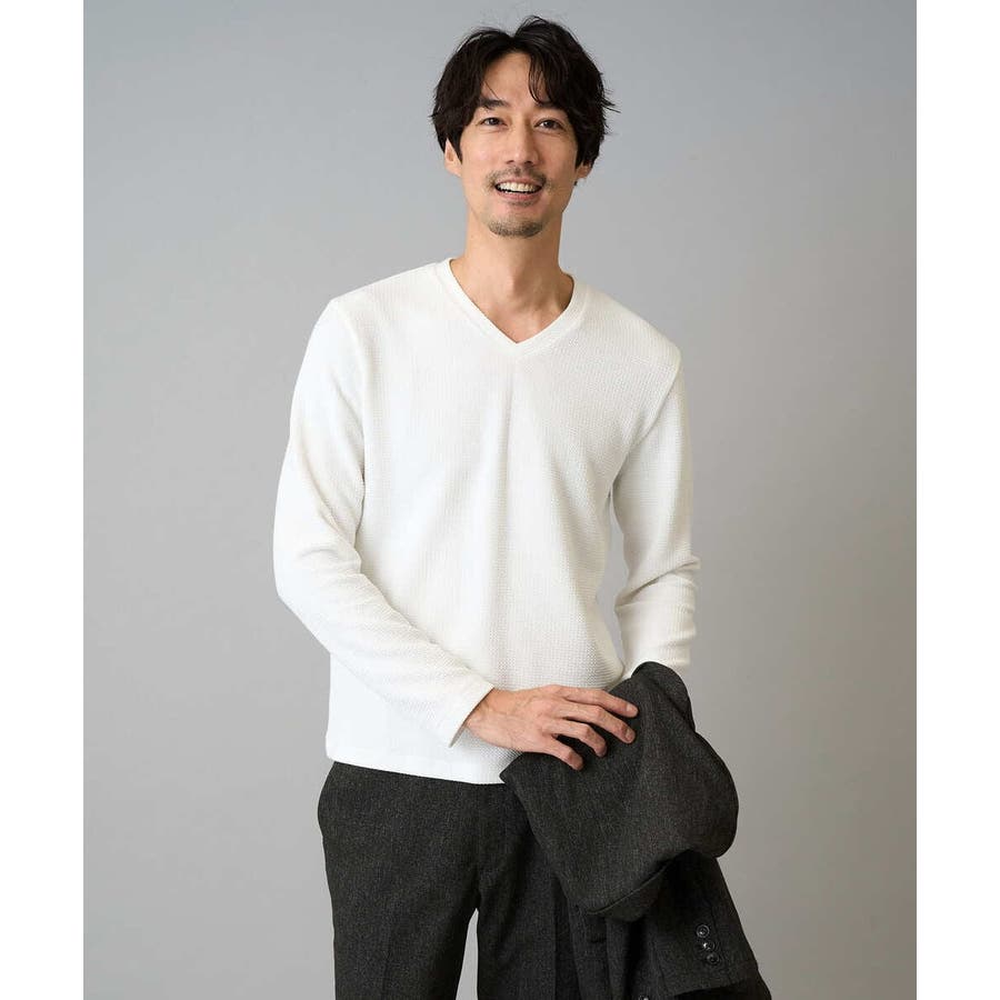 深すぎないVゾーンで、1枚で着用した際にも首元の深さが気になりすぎず快適に着用できるのがポイント。
