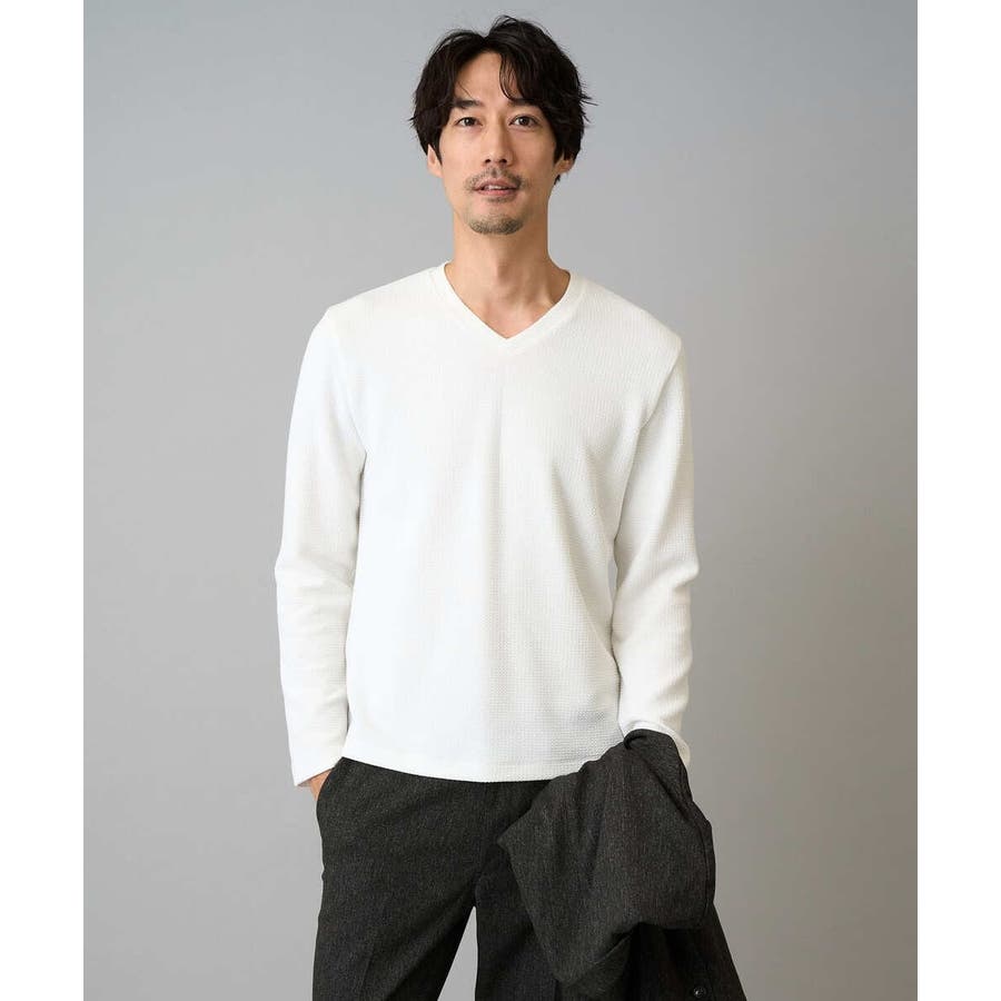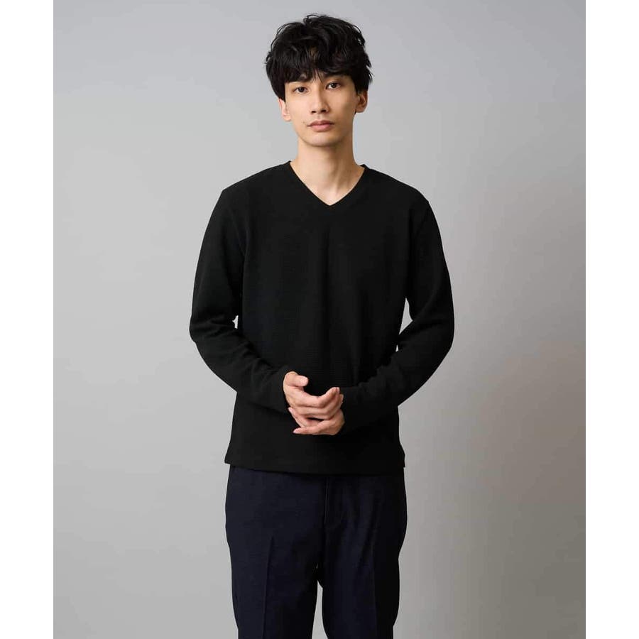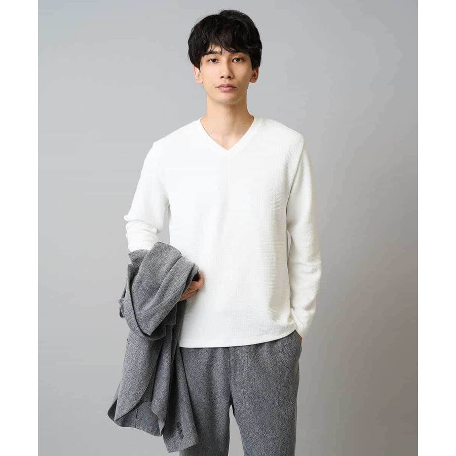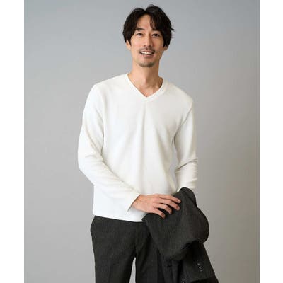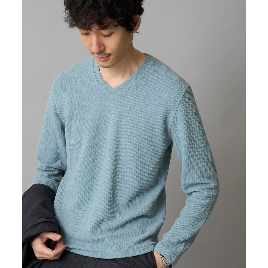 深すぎないVゾーンで、1枚で着用した際にも首元の深さが気になりすぎず快適に着用できるのがポイント。