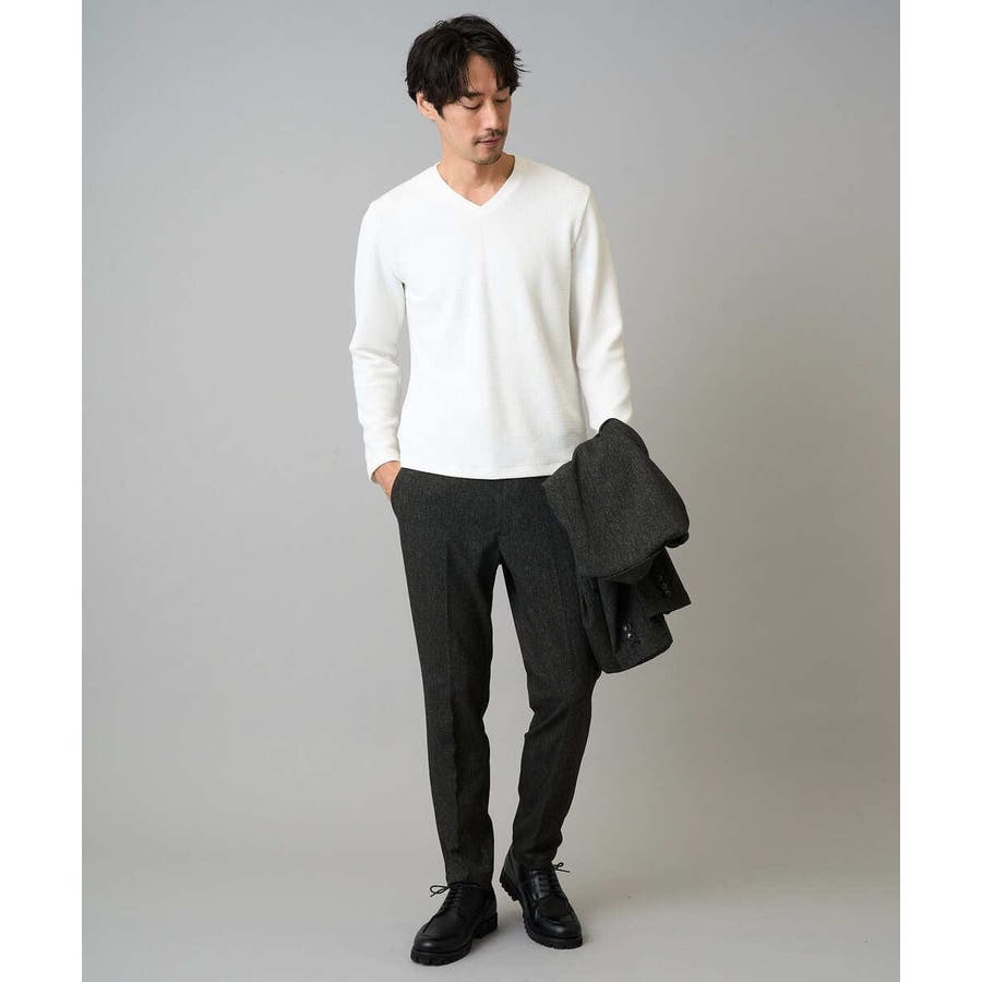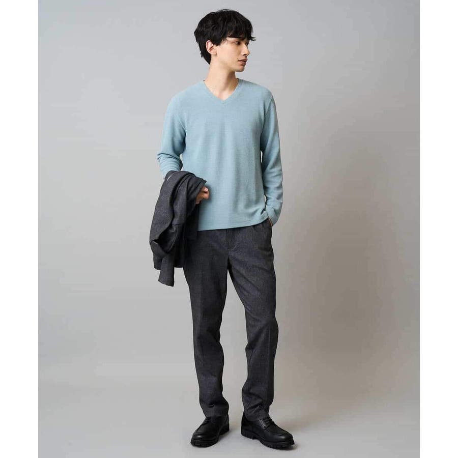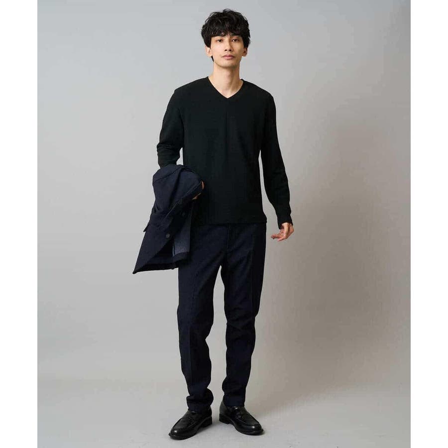 ボトムはONスタイルであればスラックス合わせ、OFFスタイルであればややゆとりのあるパンツとあわせでもバランスが良いコーディネートができます。