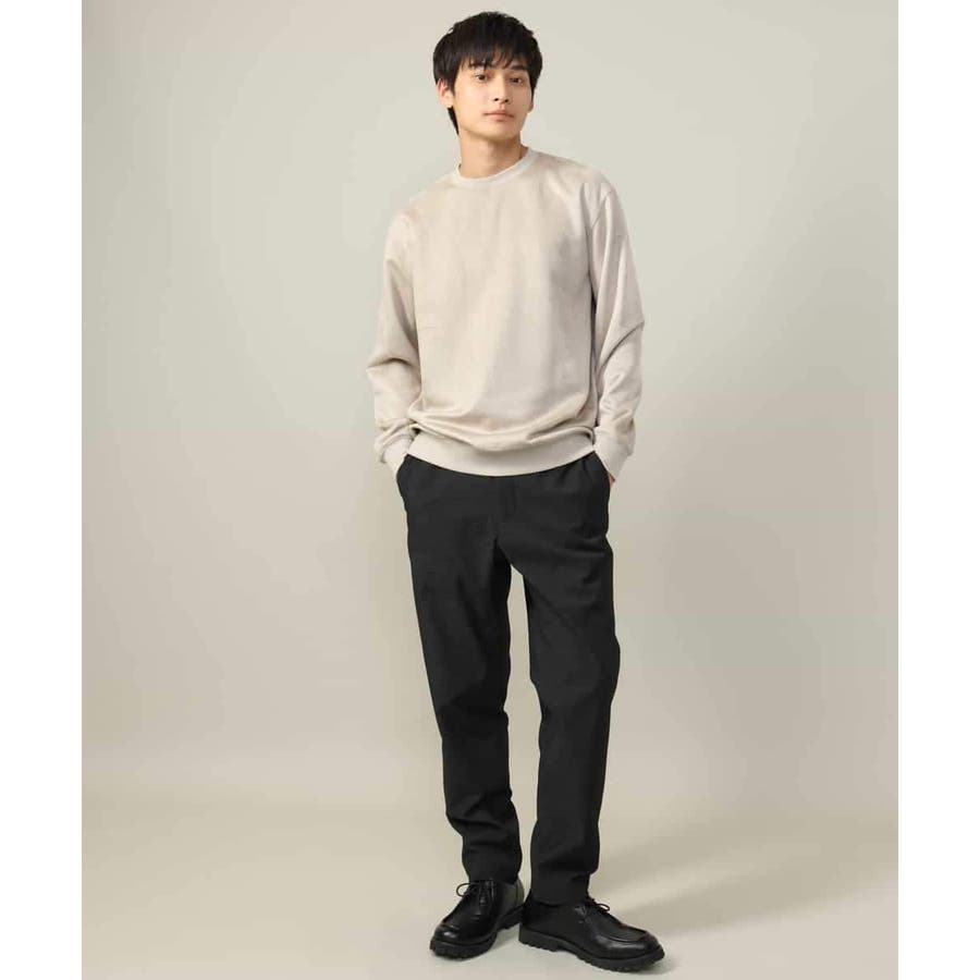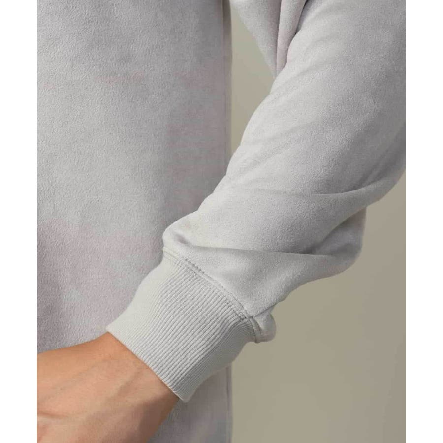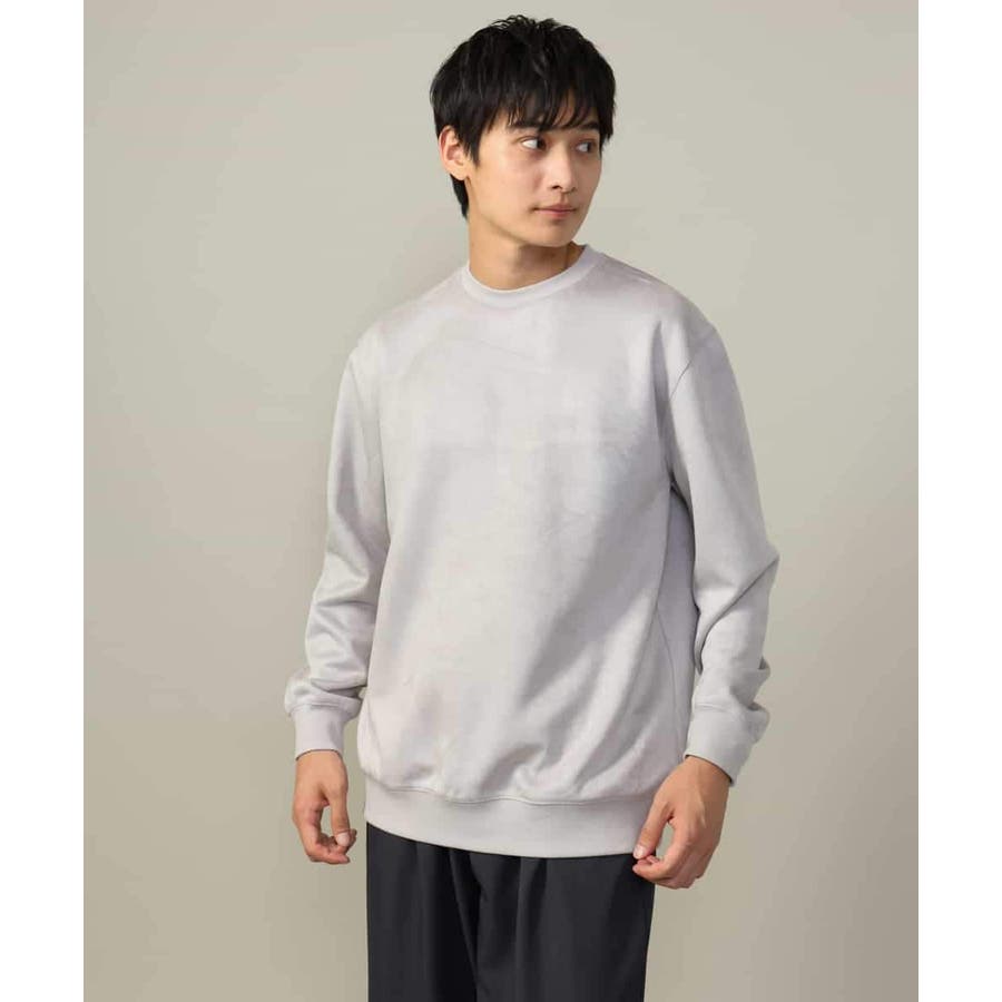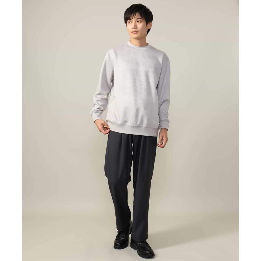 表面に起毛を施しスエード調に仕上げた、カジュアルトレーナーとは一線を画す高級感のあるジャージー素材。