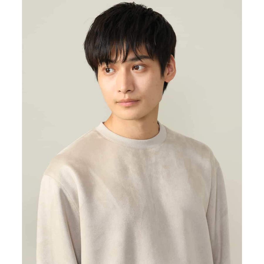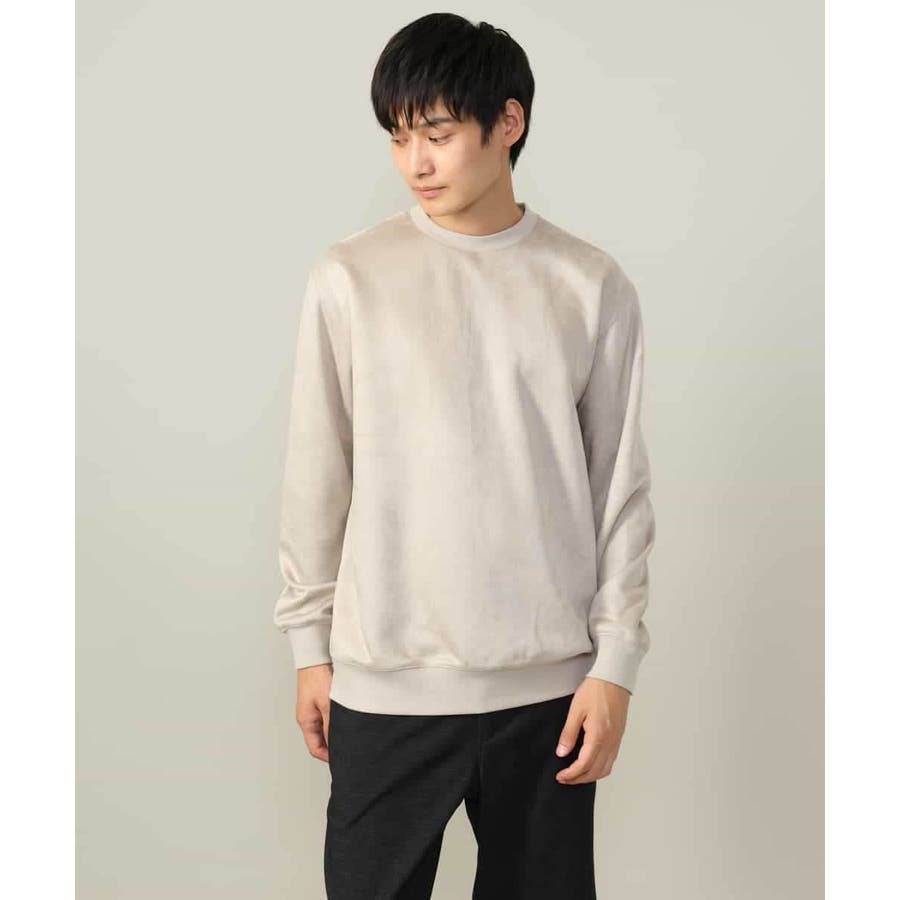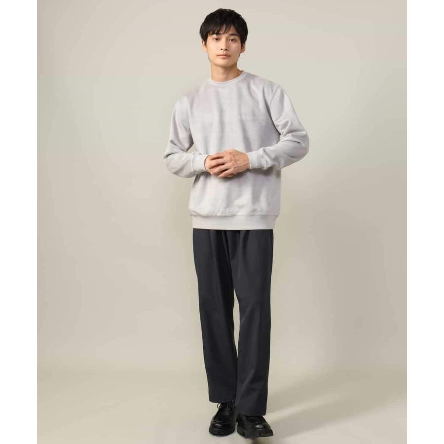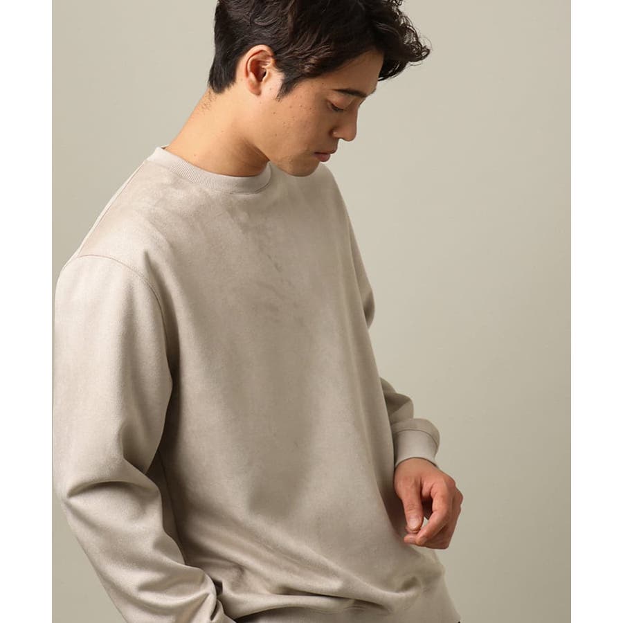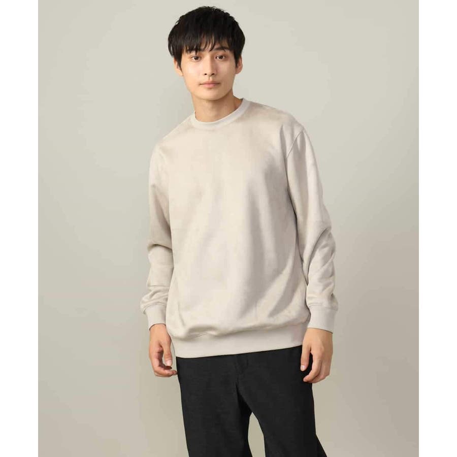 表面に起毛を施しスエード調に仕上げた、カジュアルトレーナーとは一線を画す高級感のあるジャージー素材。