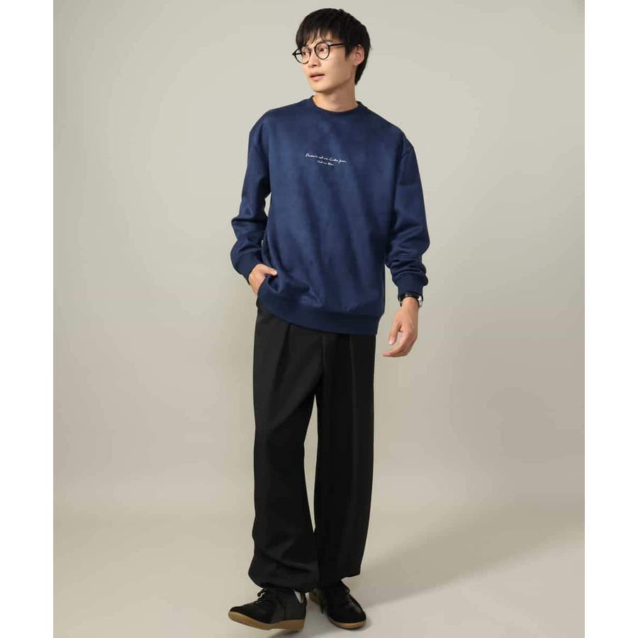 表面に起毛を施しスエード調に仕上げた、カジュアルトレーナーとは一線を画す高級感のあるポンチ素材。