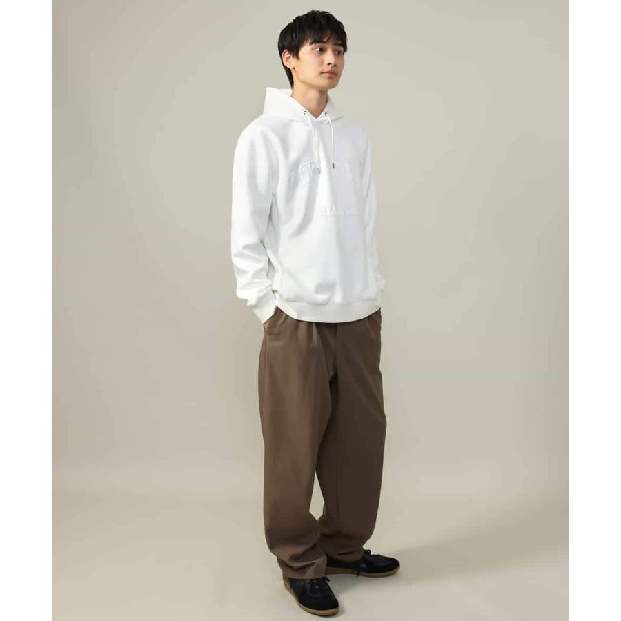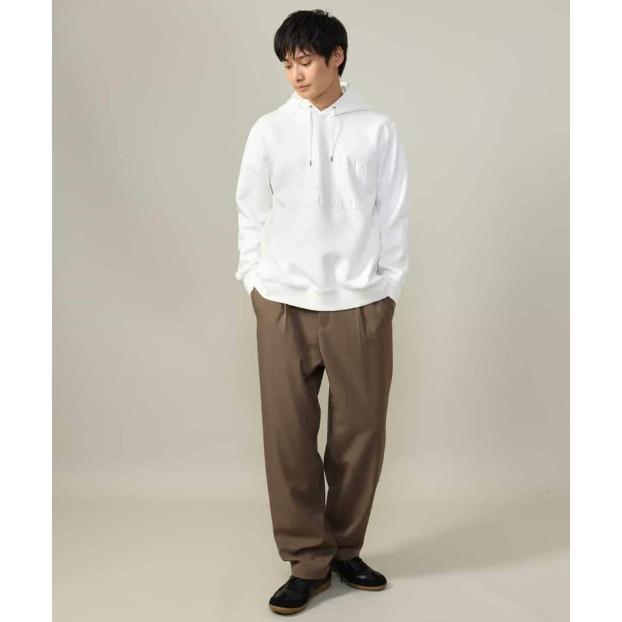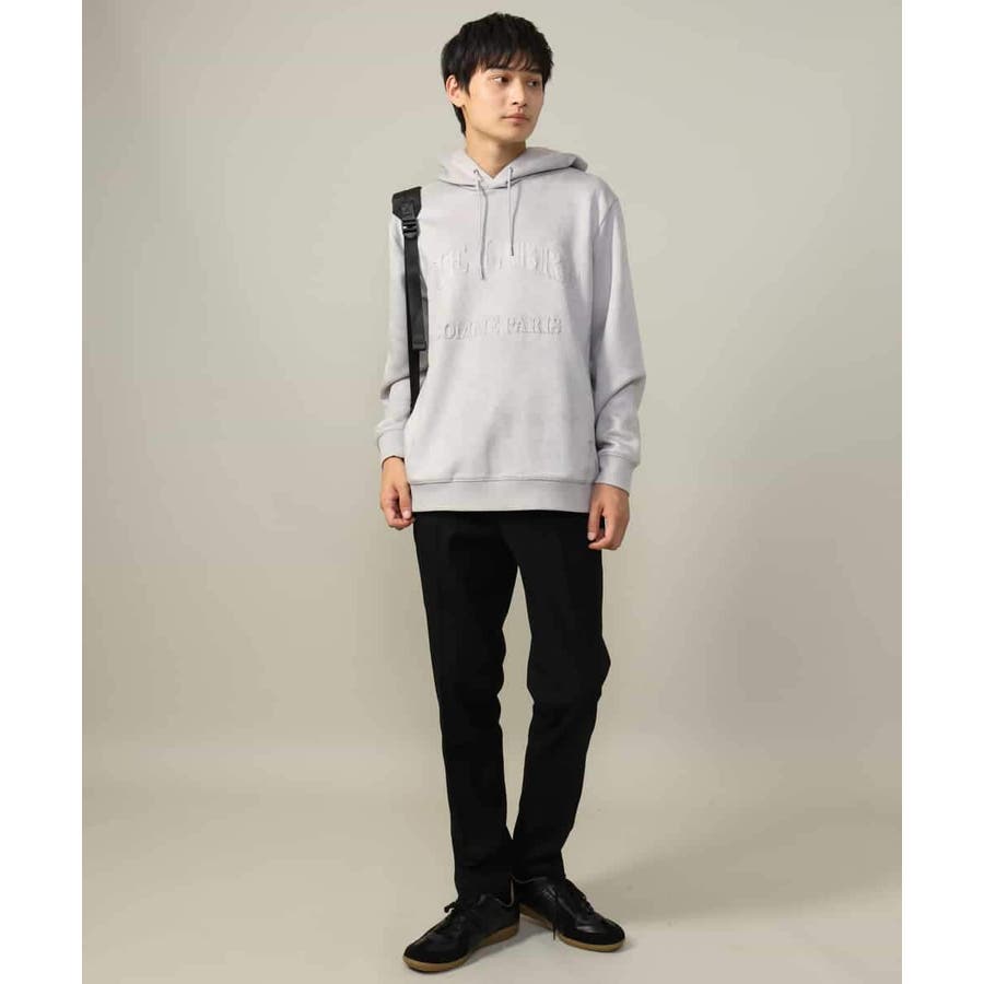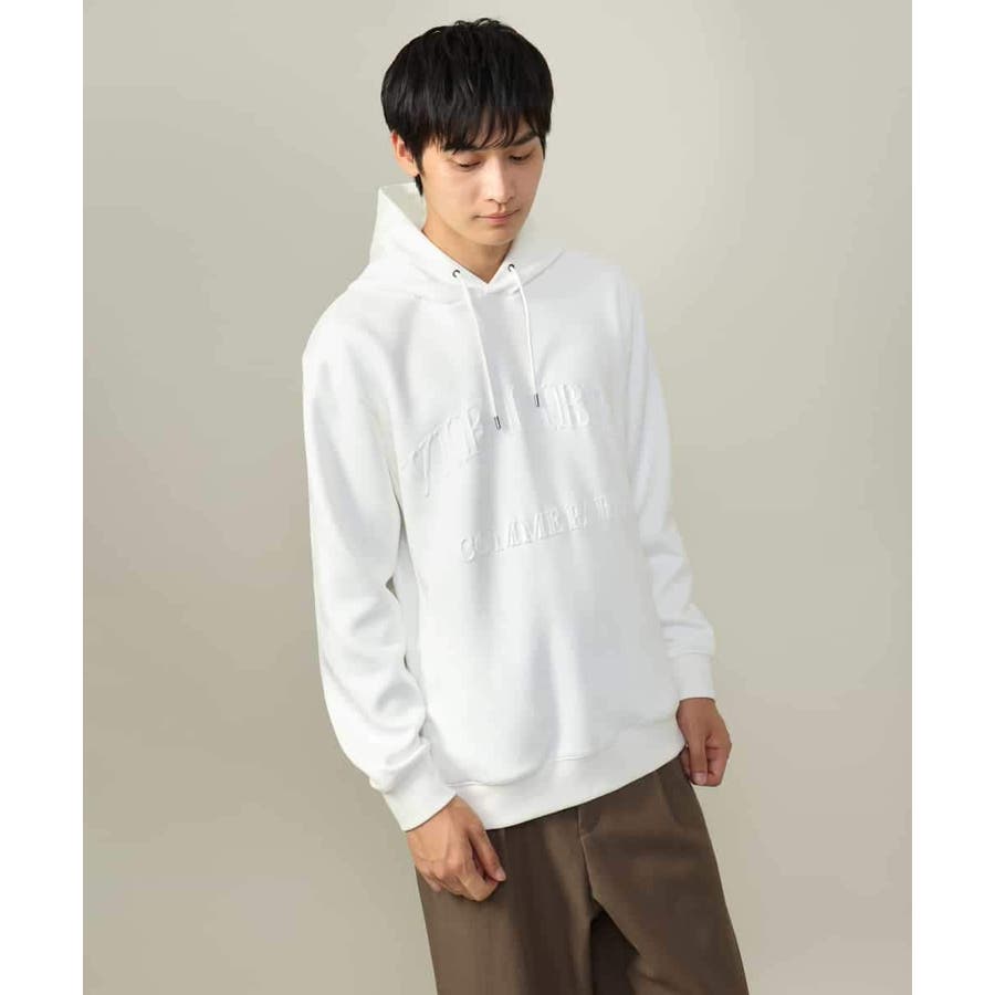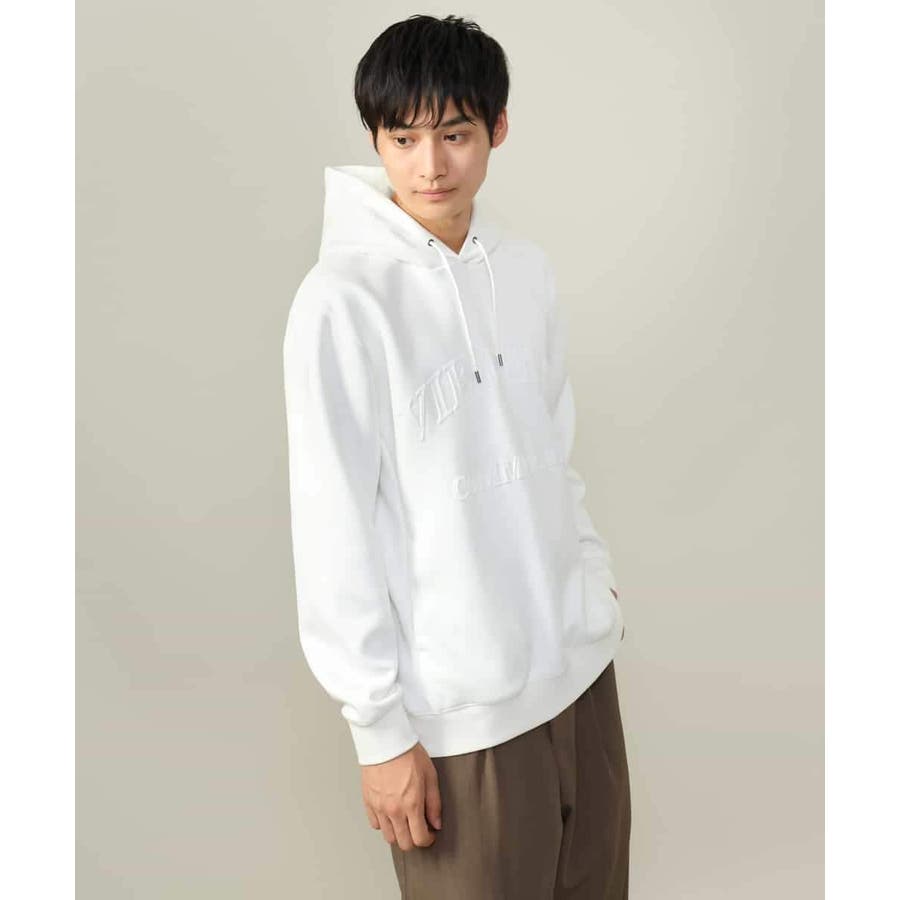 ロゴデザインを凹凸感のあるエンボス加工で表現することでカジュアルになり過ぎず、クリーンに着こなせるパーカーに仕上げました。