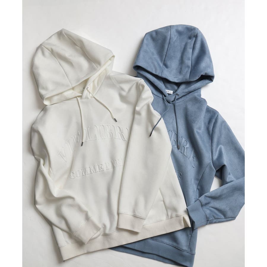 【春まで使える】フェイクスエードエンボスロゴパーカー