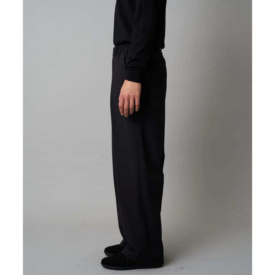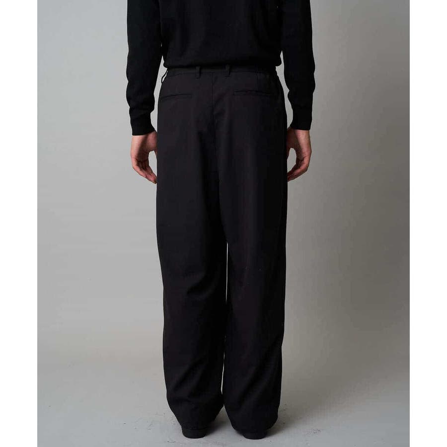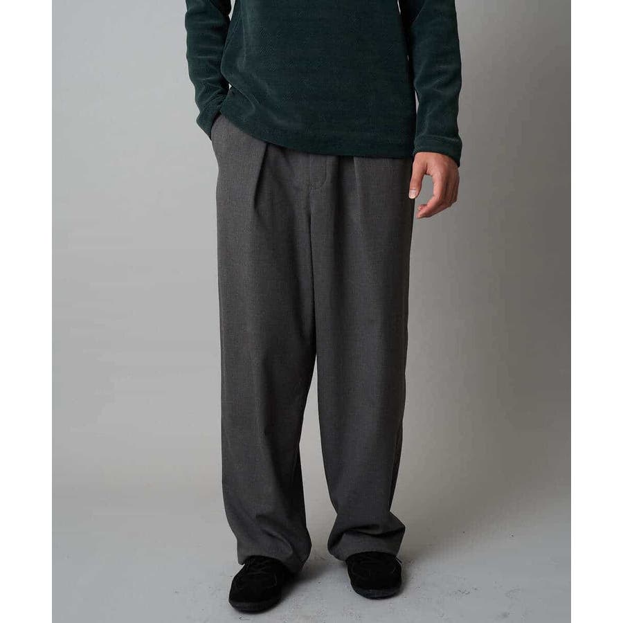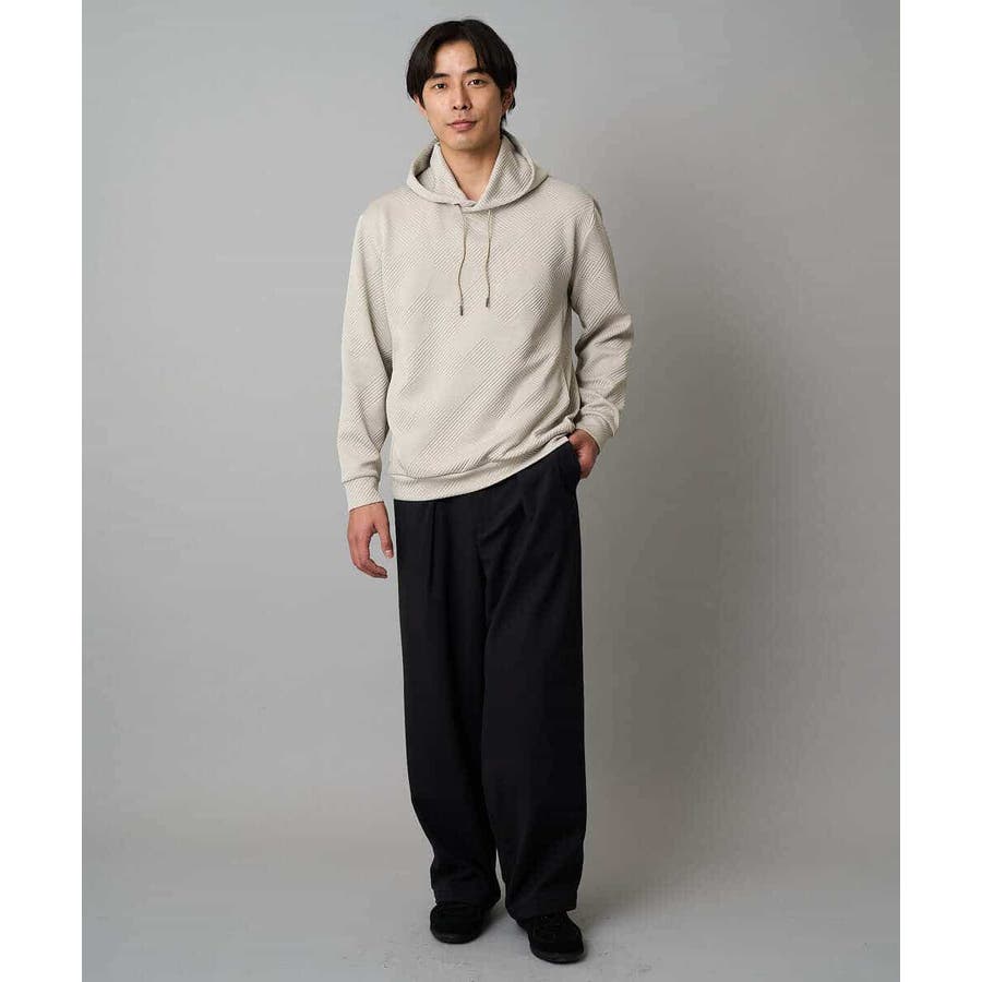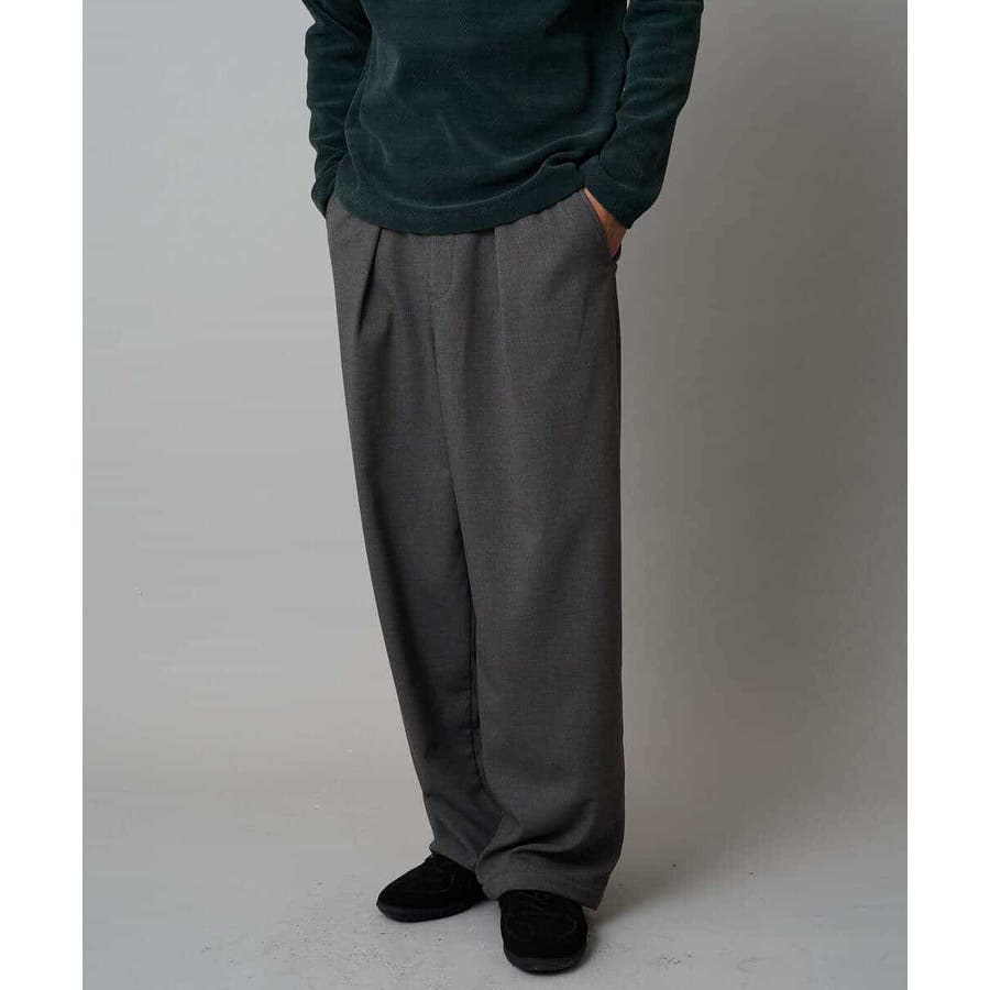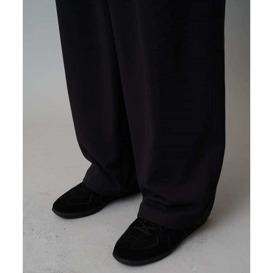 全体にゆとりを持たせたワイドシルエットで、裾までまっすぐ落ちるようなラインが特徴です。