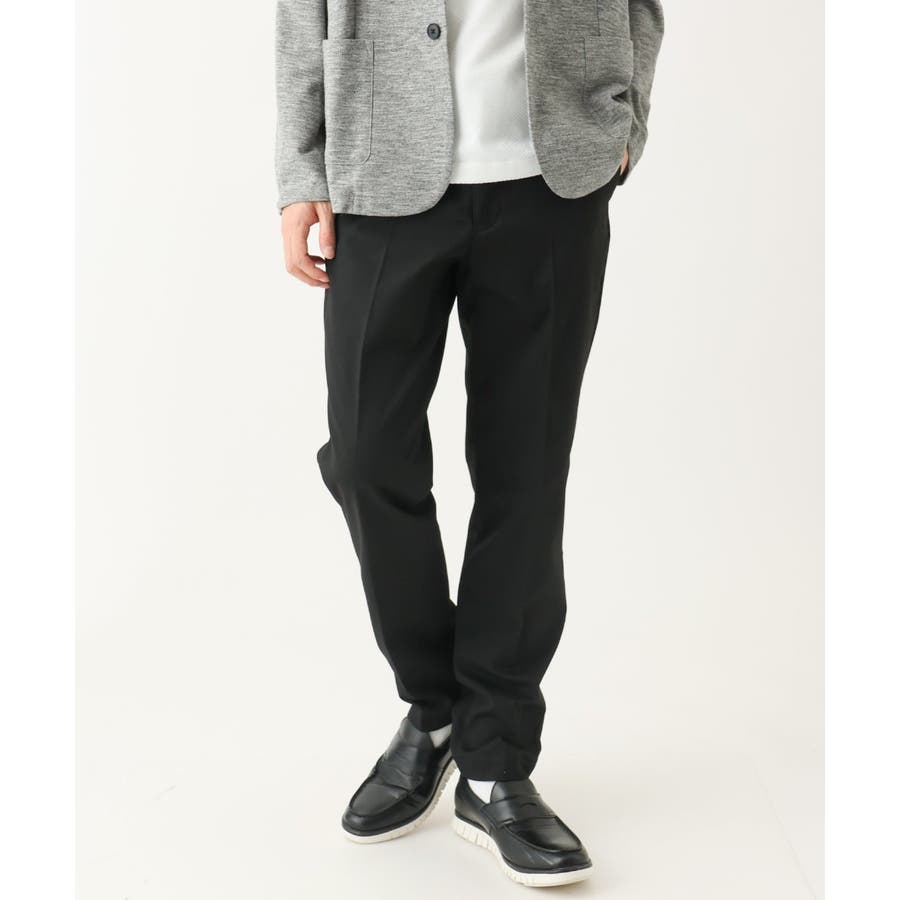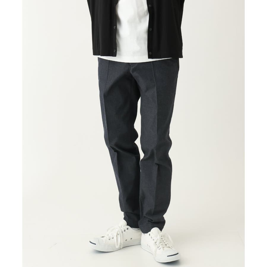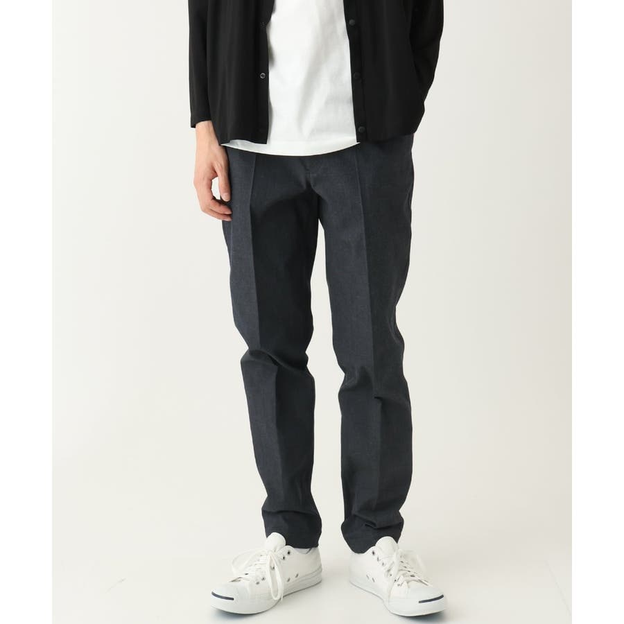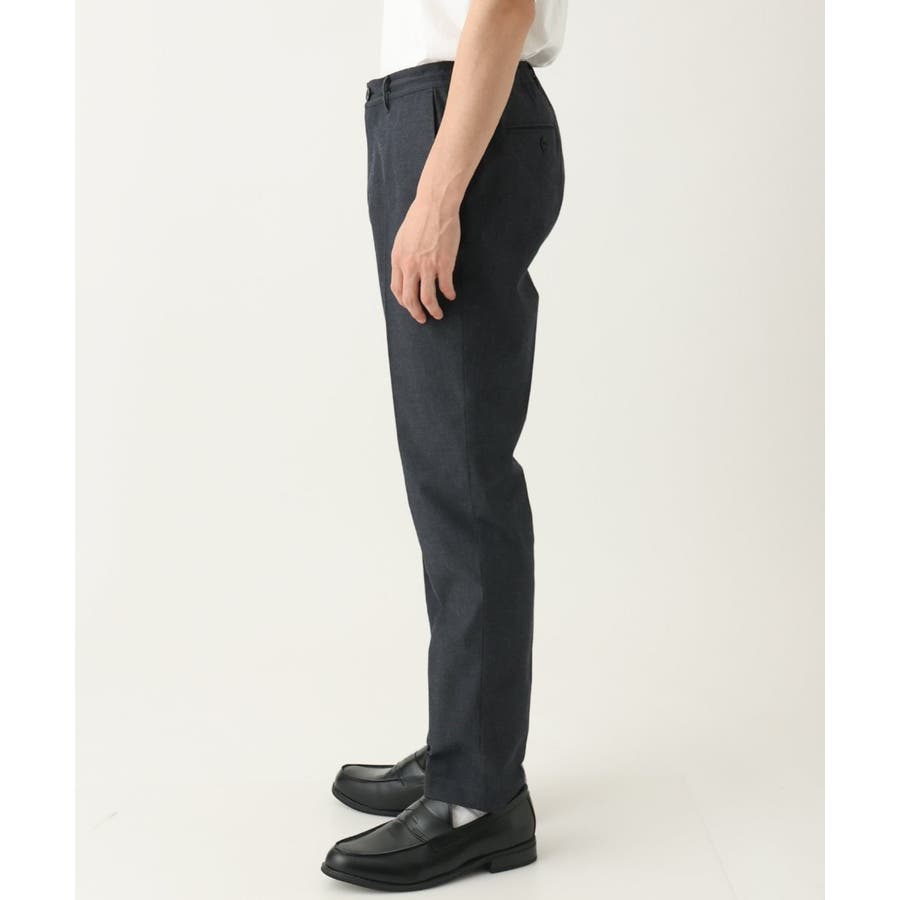 スッキリとしたスラックス型のため、トップスはシャツ・カットソー・ニットなど様々なアイテムに合わせられる万能アイテムです。
