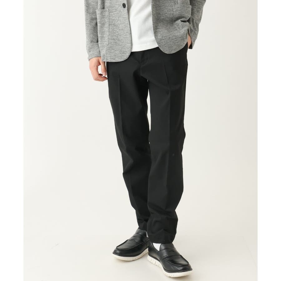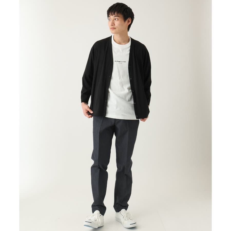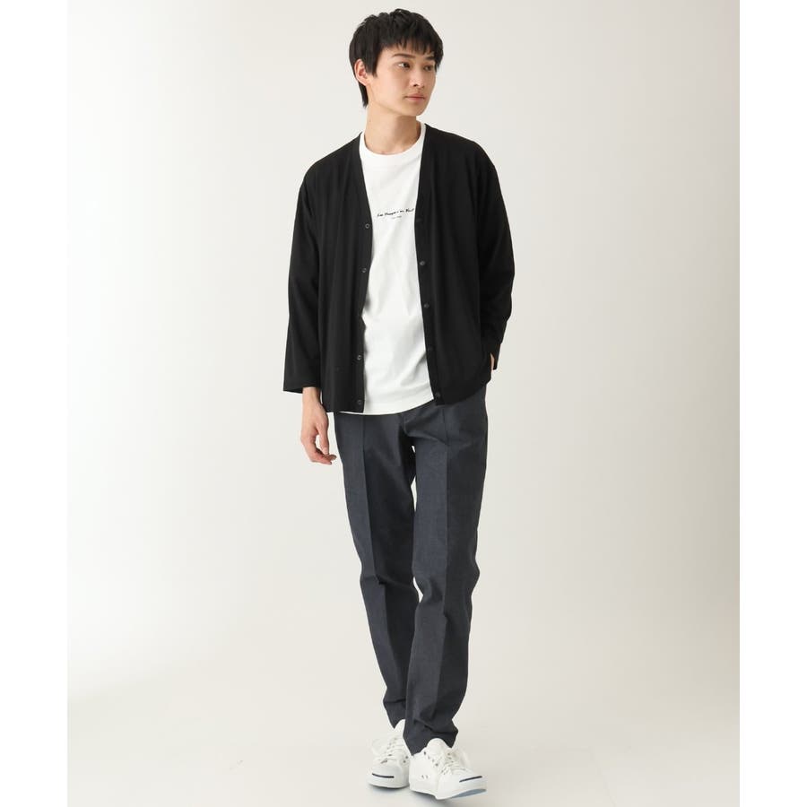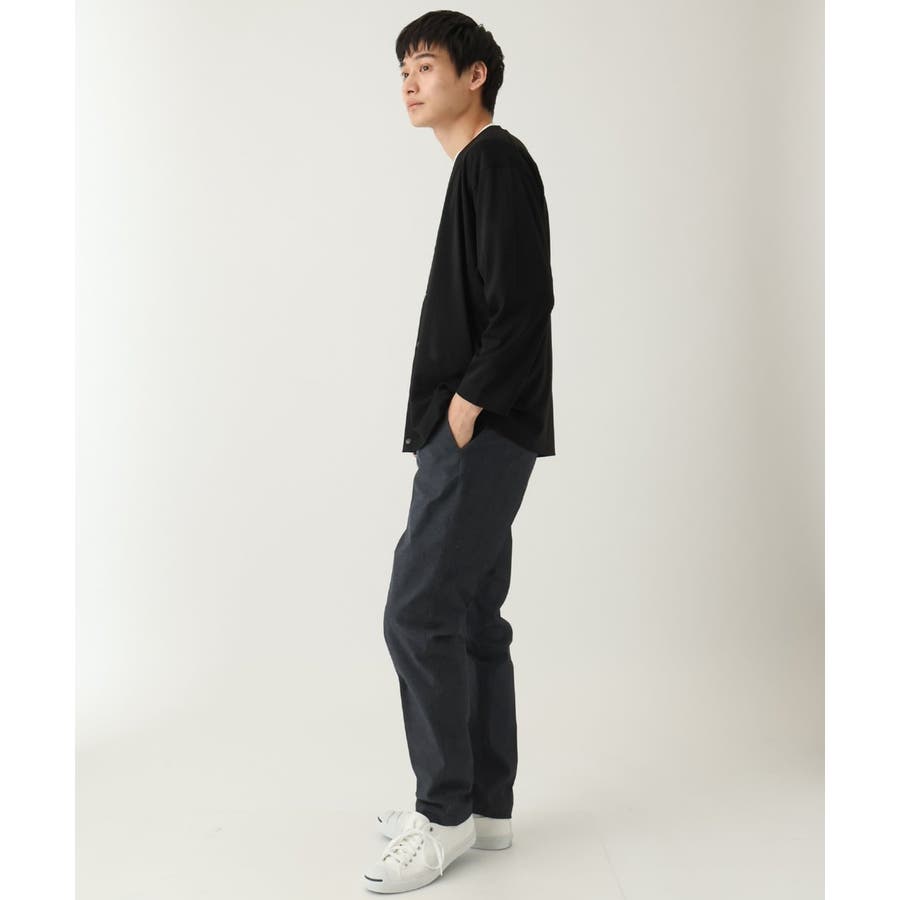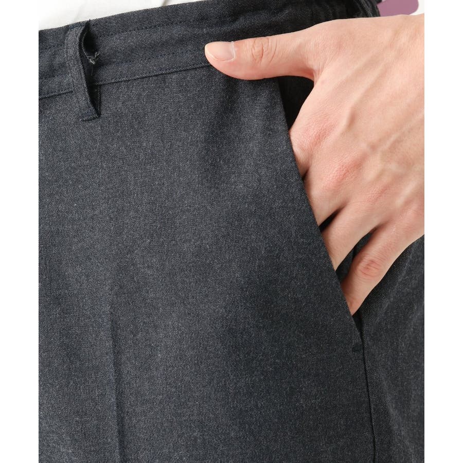 スッキリとしたスラックス型のため、トップスはシャツ・カットソー・ニットなど様々なアイテムに合わせられる万能アイテムです。