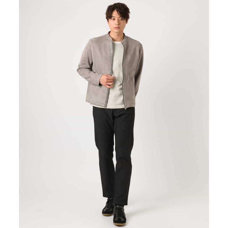 同素材のテーラードジャケットと合わせたセットアップスタイルもオススメです。