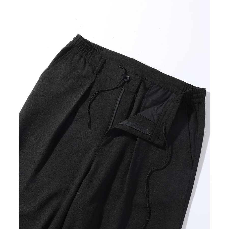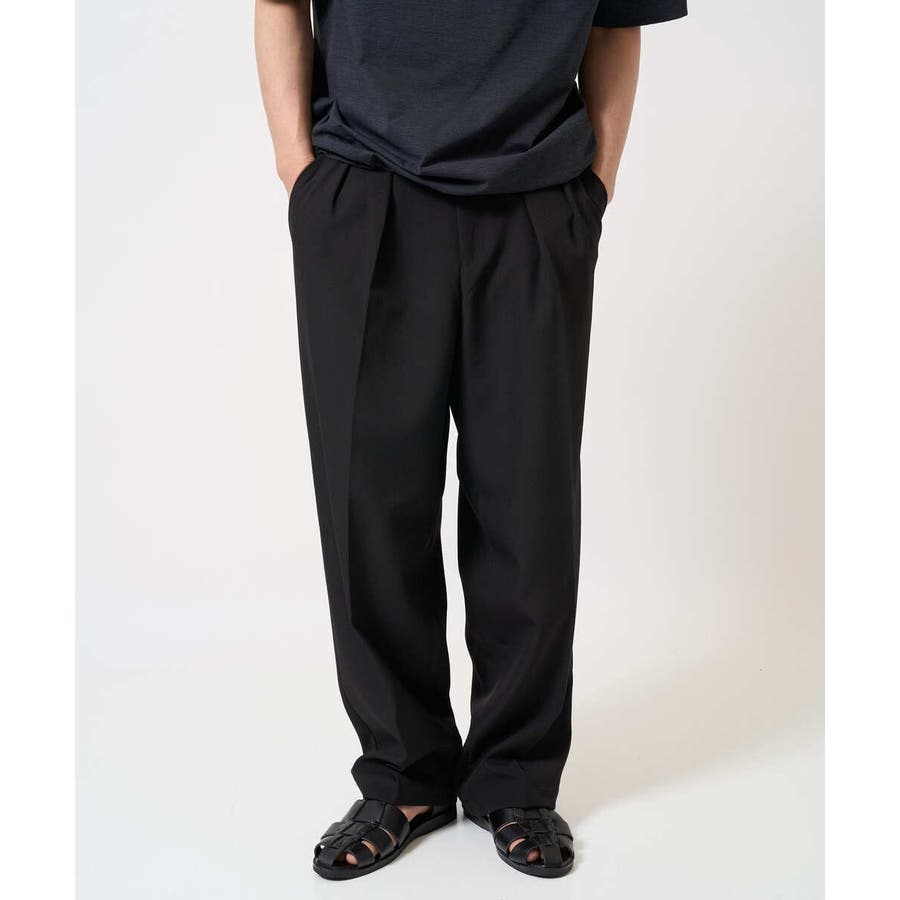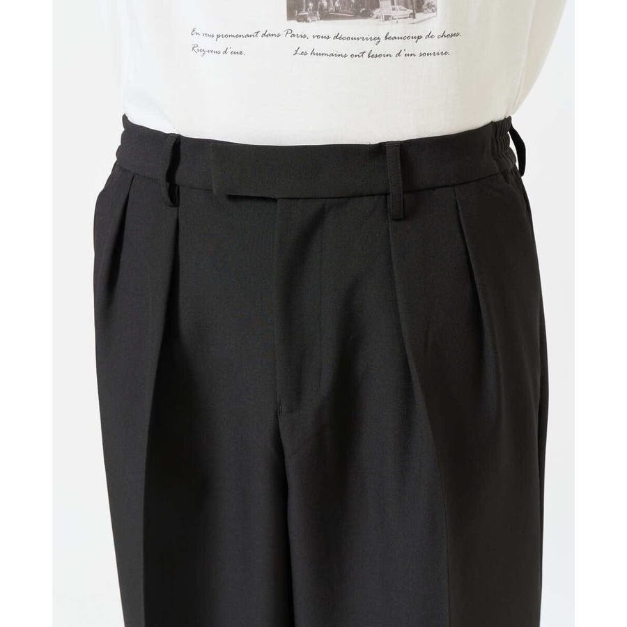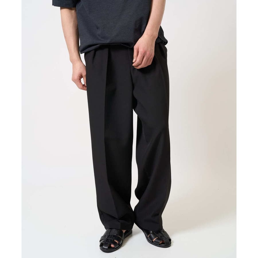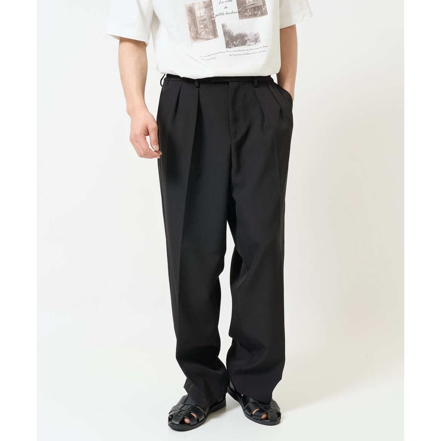 2タック入りで腰回りにゆとりを持たせたボクシーなイージーワイドスラックス。