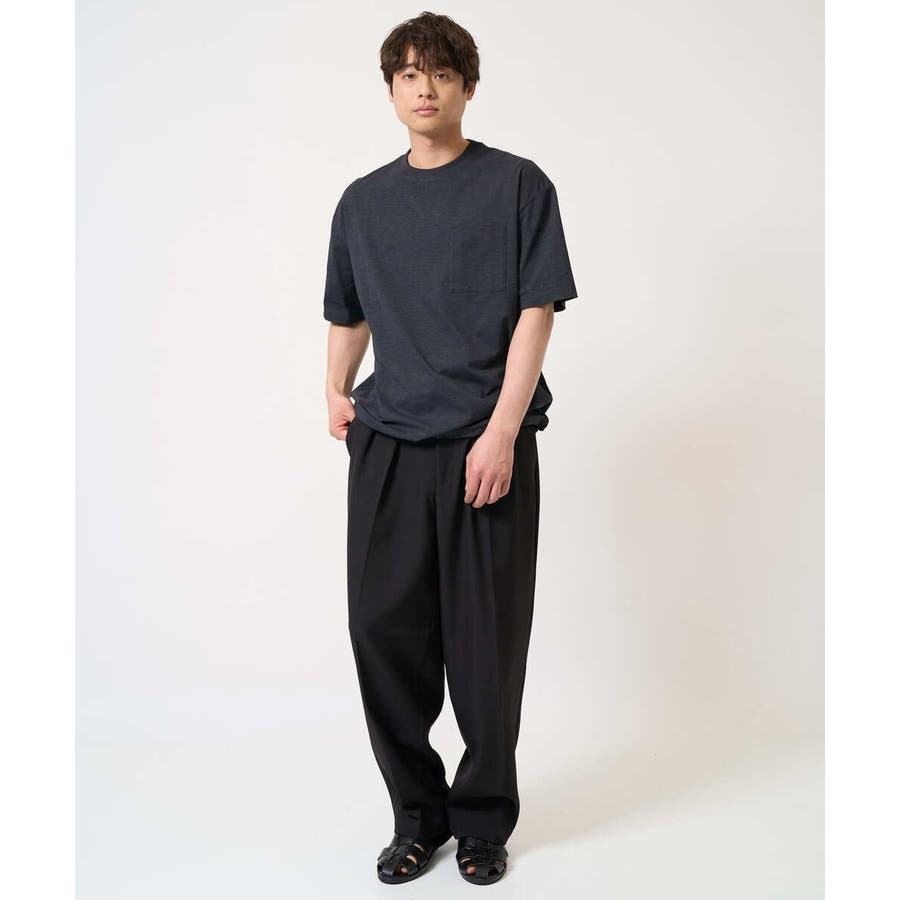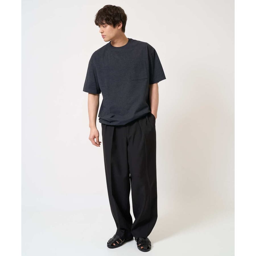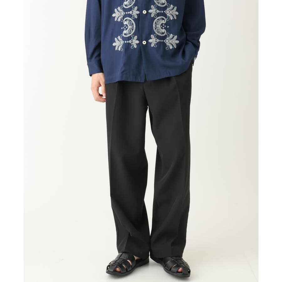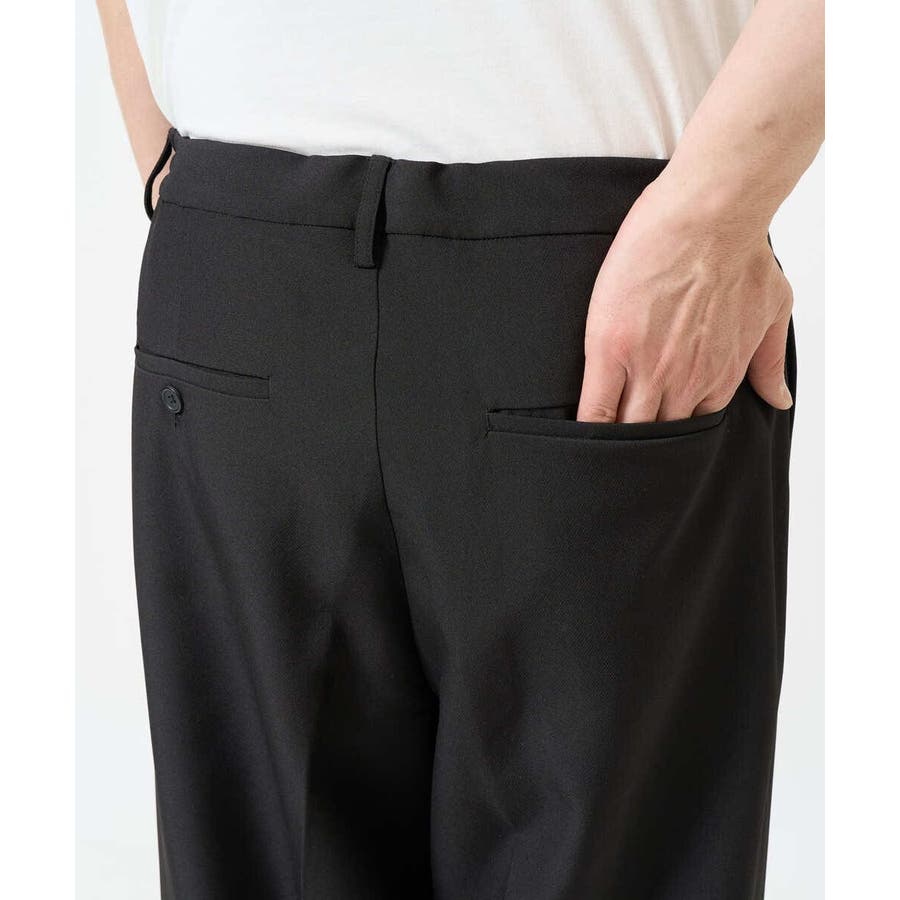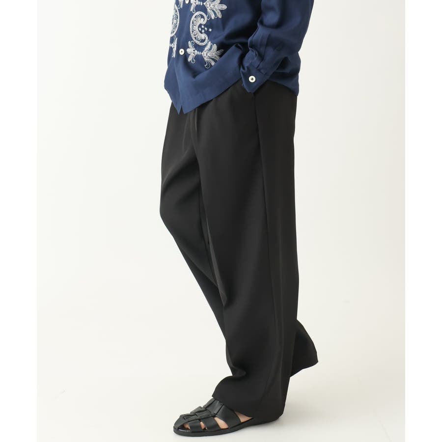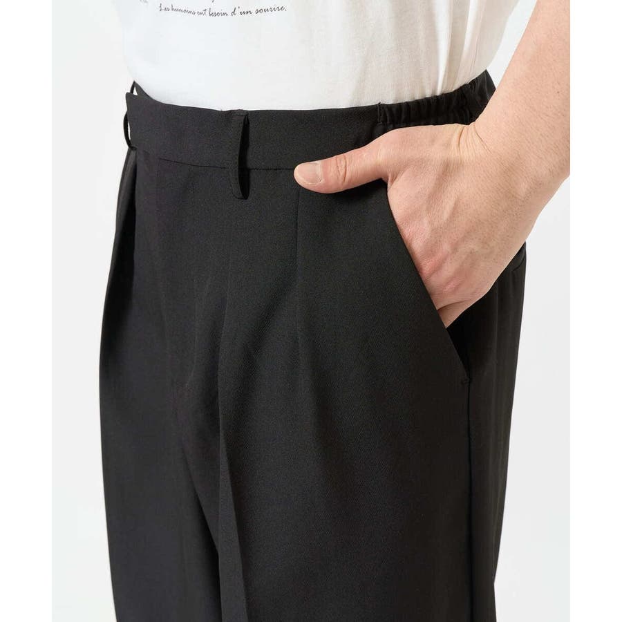 2タック入りで腰回りにゆとりを持たせたボクシーなイージーワイドスラックス。