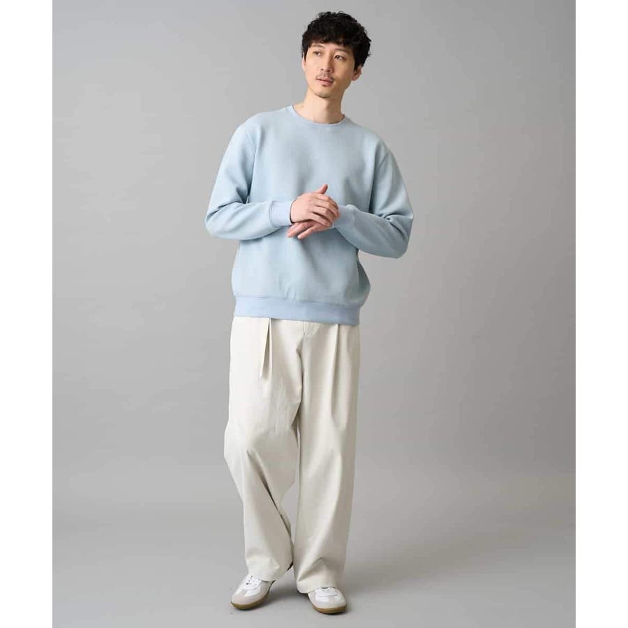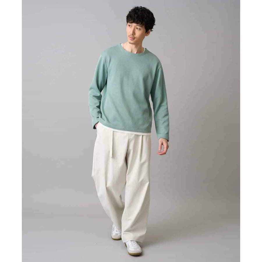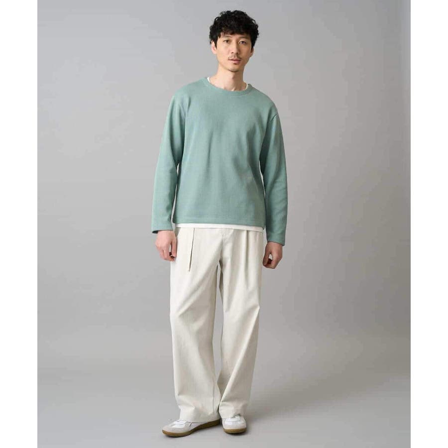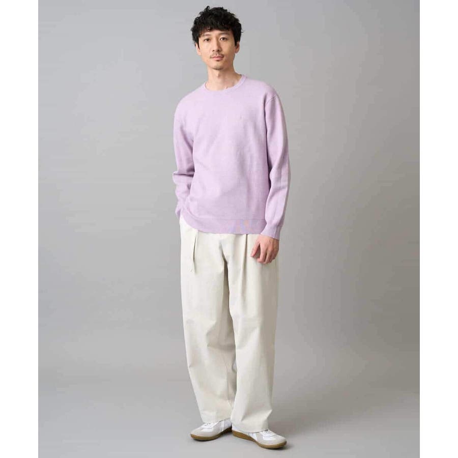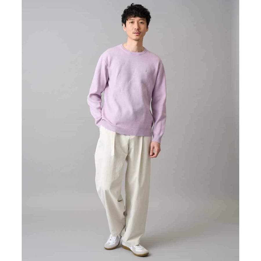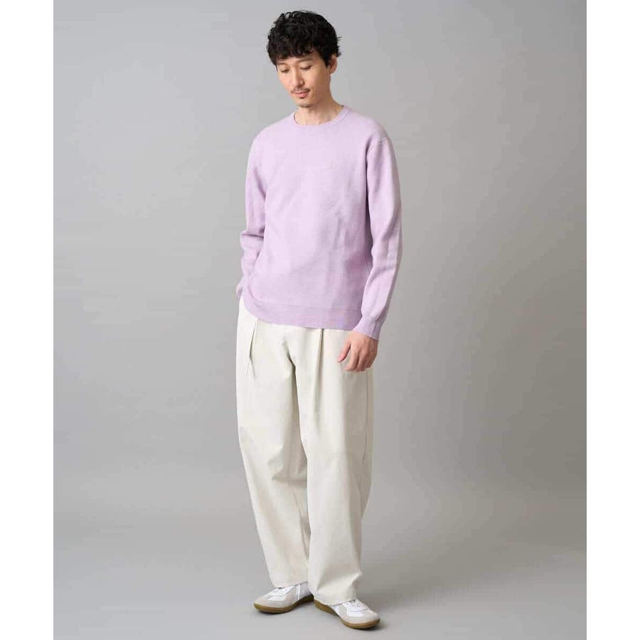 ナチュラルストレッチ、毛玉になりにくい、イージーケア、ご自宅で気軽に洗濯機で洗えるため、お手入れも簡単でデイリーユースに着用が可能です。
