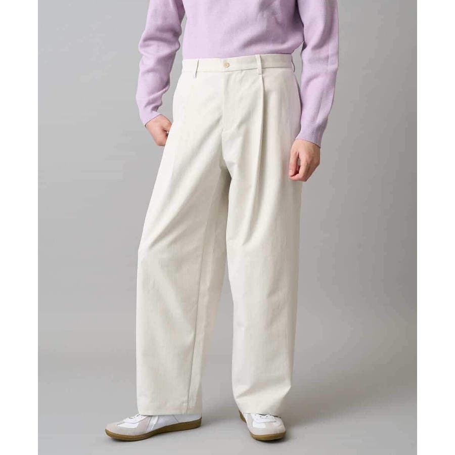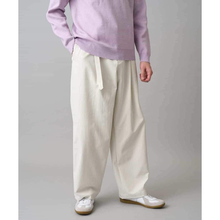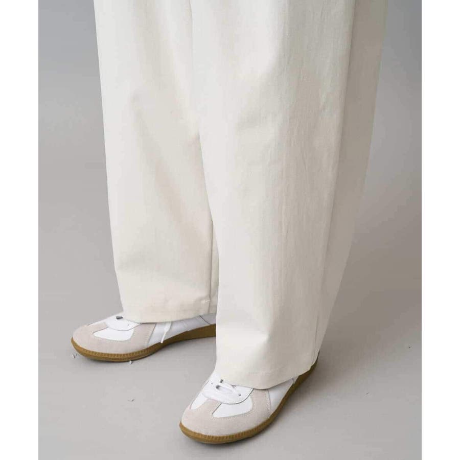 1タック入りで腰回りにゆとりを持たせたボクシーなイージーワイドテーパードパンツ。