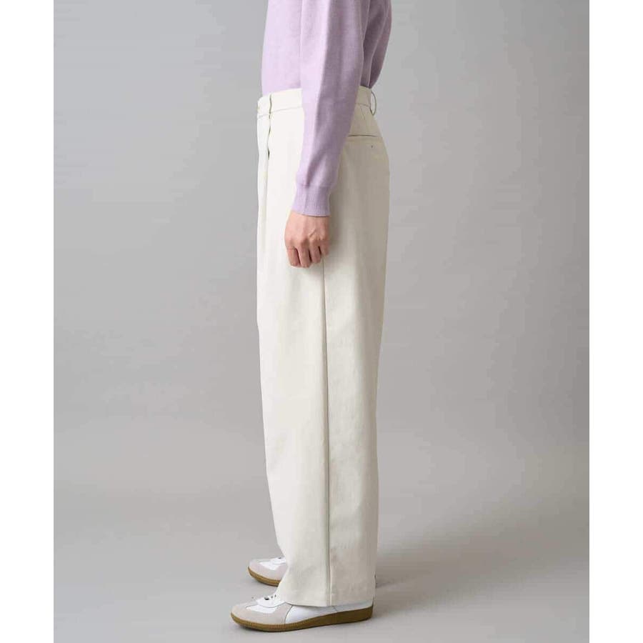深めのタックが入り、脇線に少しカーブを付けて丸みのあるトレンド感あるシルエットにしています。