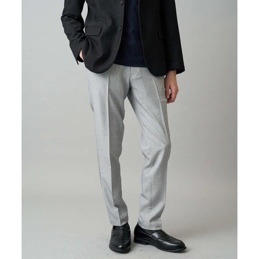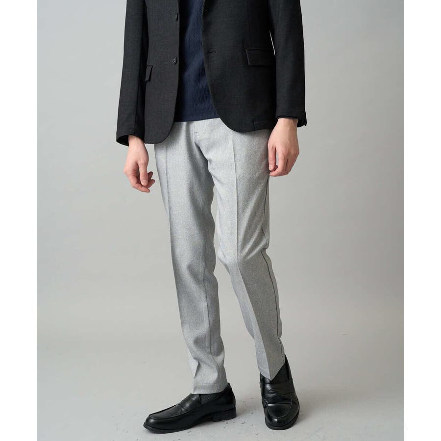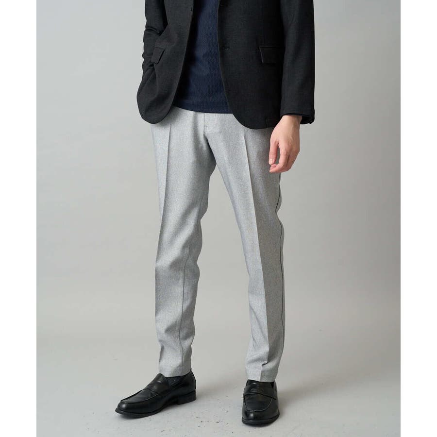 新シリーズ!!大人のきれいめスタイルを提案する〈ON/OFF SERIES〉 上品見えするメランジ素材を使用した美脚見えテーパードシルエットパンツ。