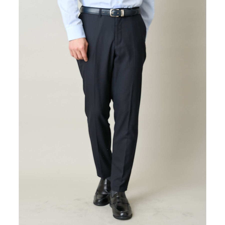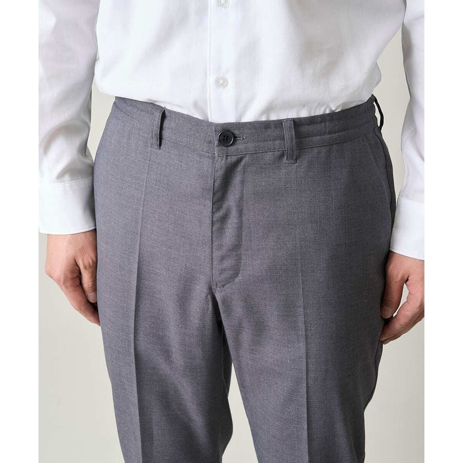 脚長効果でスタイルを良く見せることが期待できるこだわりのセンタープレス入りのテーパードシルエット。