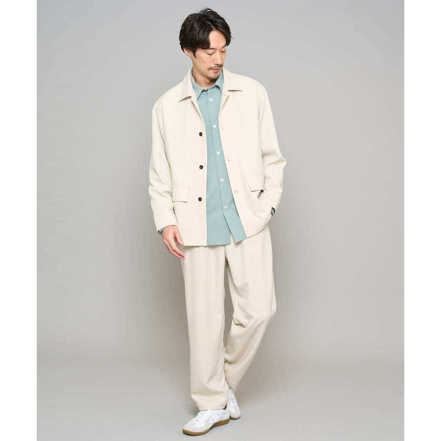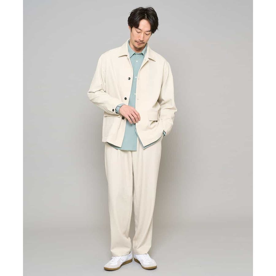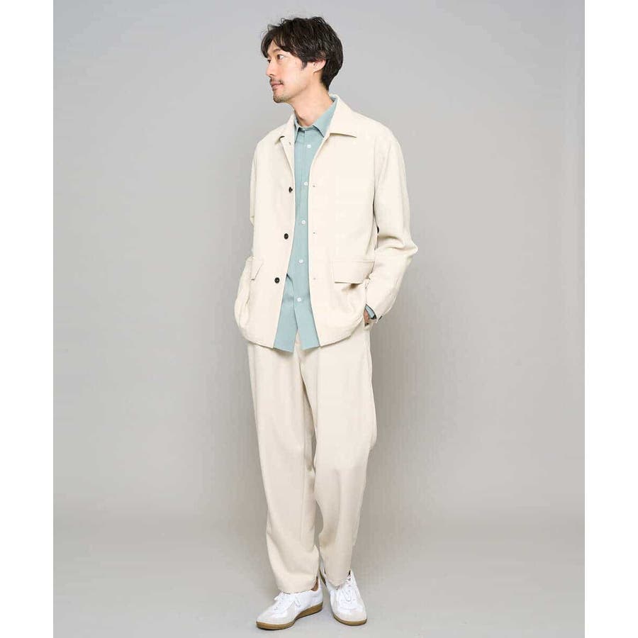 同素材のジャケットを合わせたセットアップスタイルが今季らしい着こなしです。