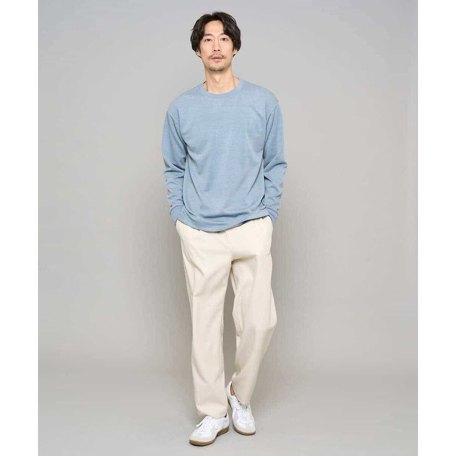 麻の独特なメランジ感とやや落ち感がある、きれいめな風合いのある素材感がポイントです。