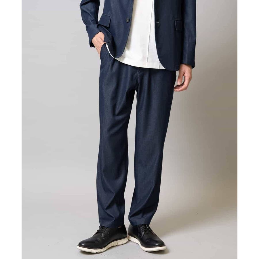 スマートシャンブレー フルレングス テーパードパンツ