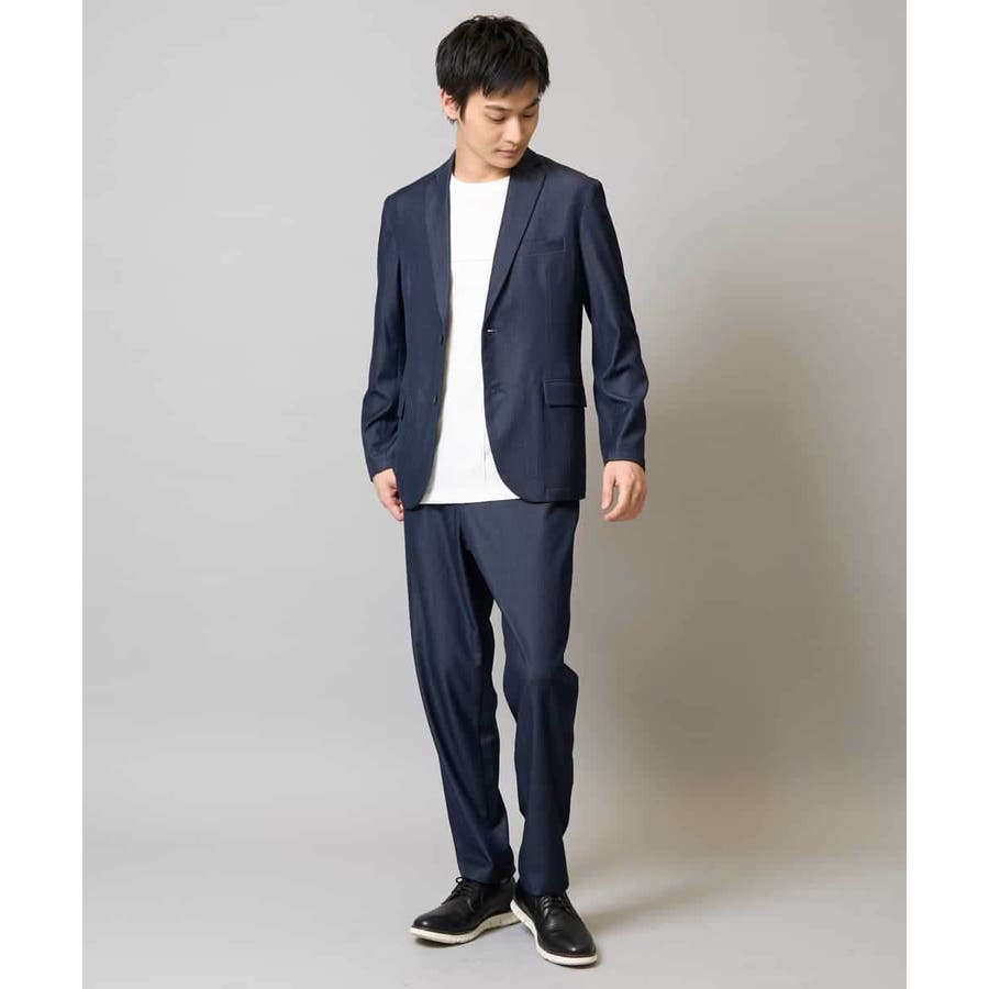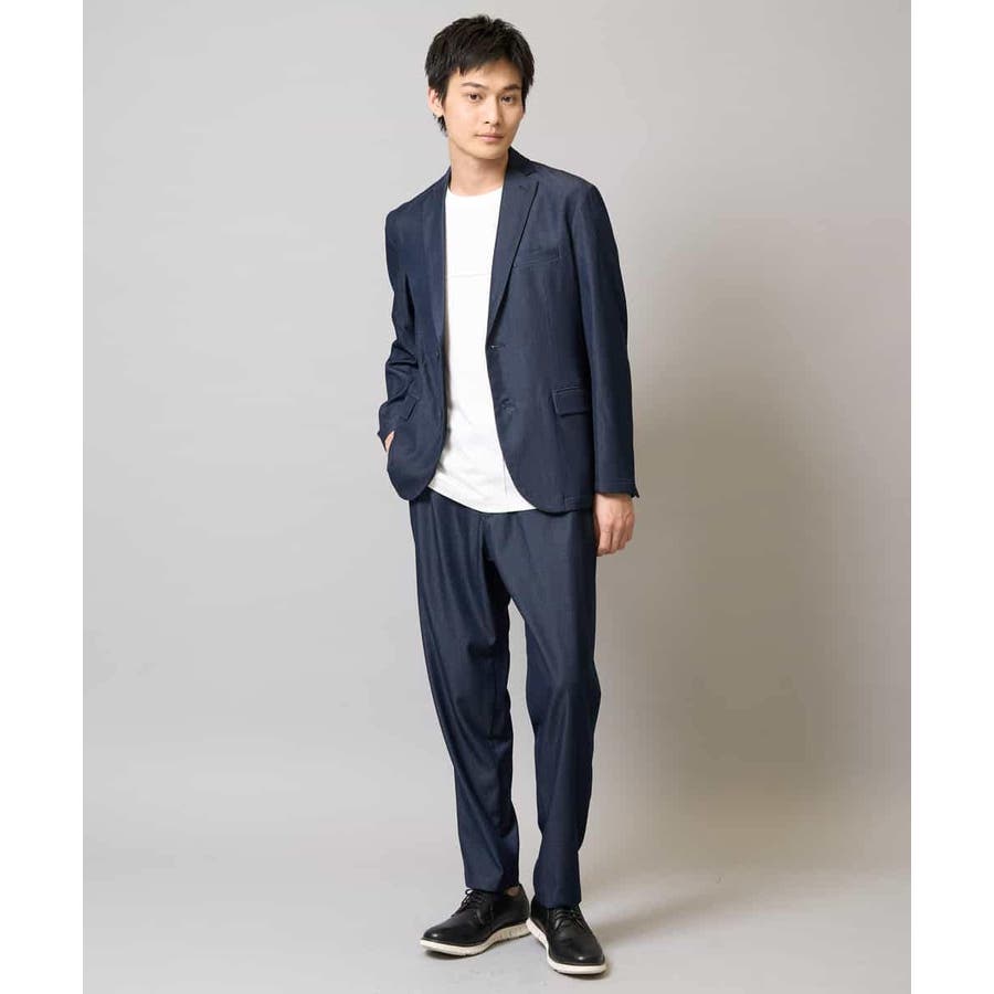 クールビズシーンではポロシャツやボタンダウンシャツ合わせや 同素材のテーラードジャケットと合わせたセットアップスタイルがおすすめ。