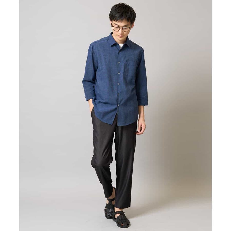 【イージーケア/接触冷感】スマートシャンブレーアンクル丈テーパードパンツ