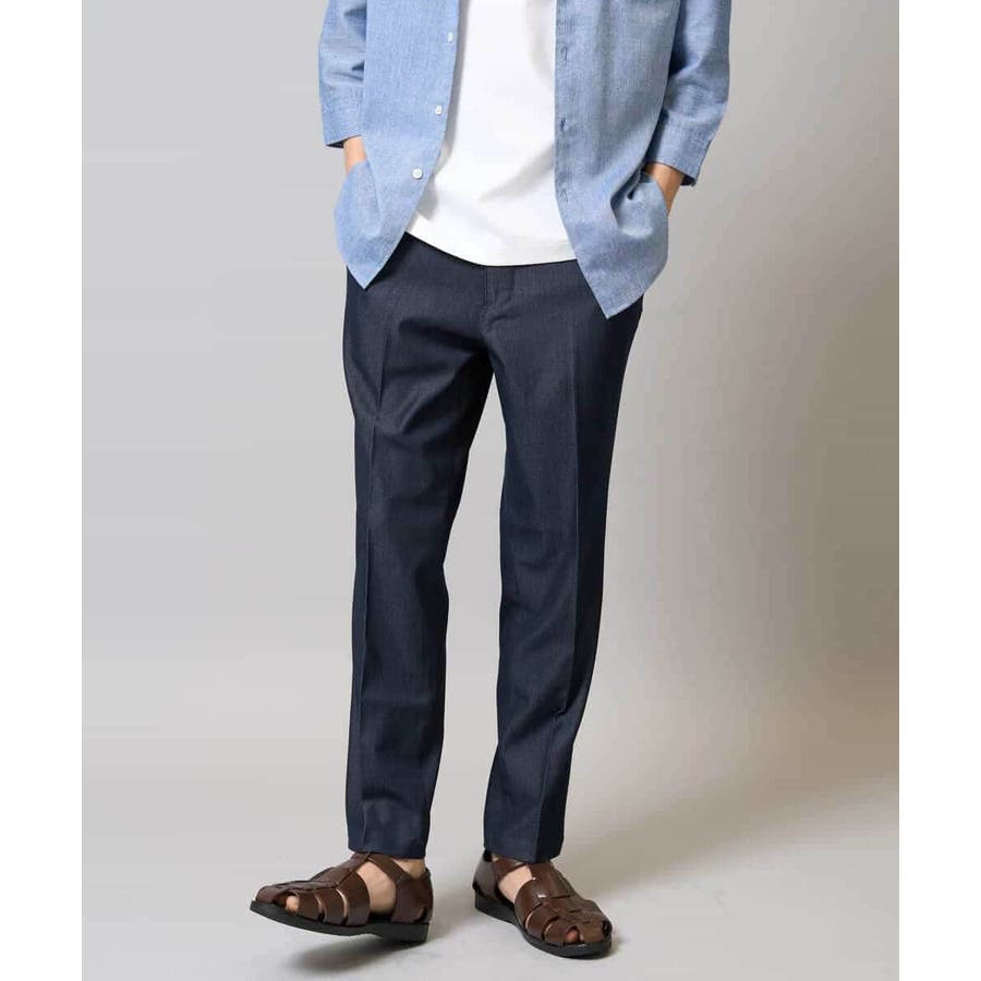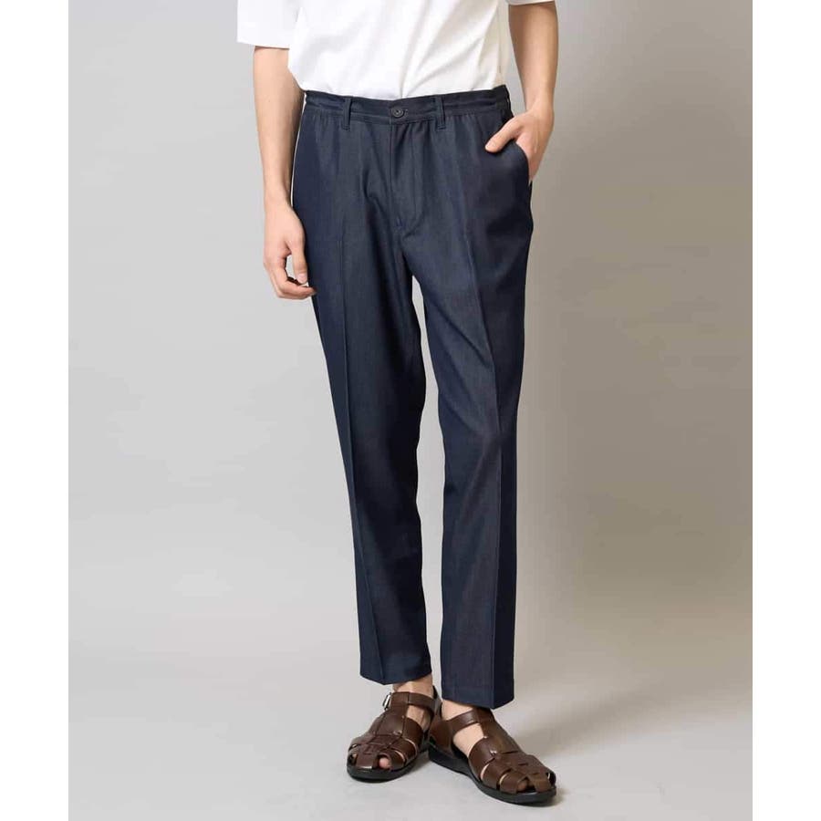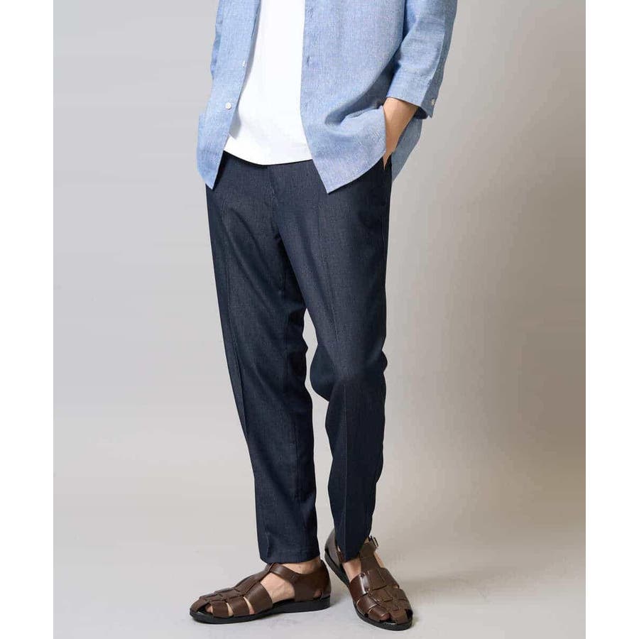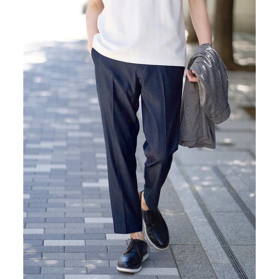 【イージーケア/接触冷感】スマートシャンブレーアンクル丈スラックス