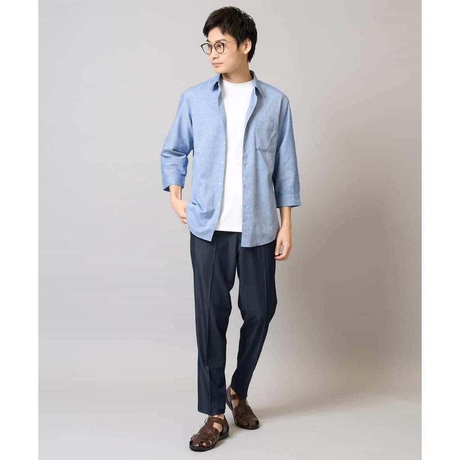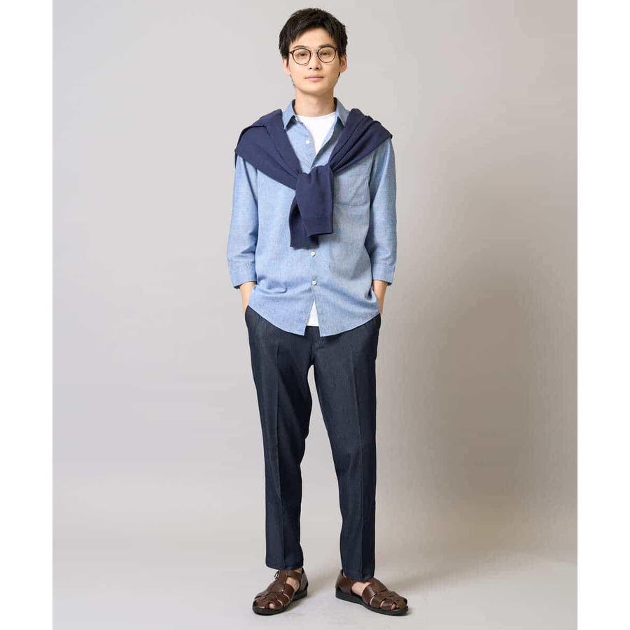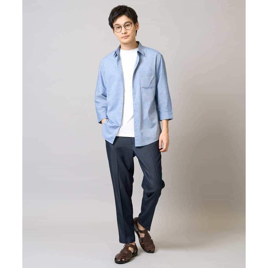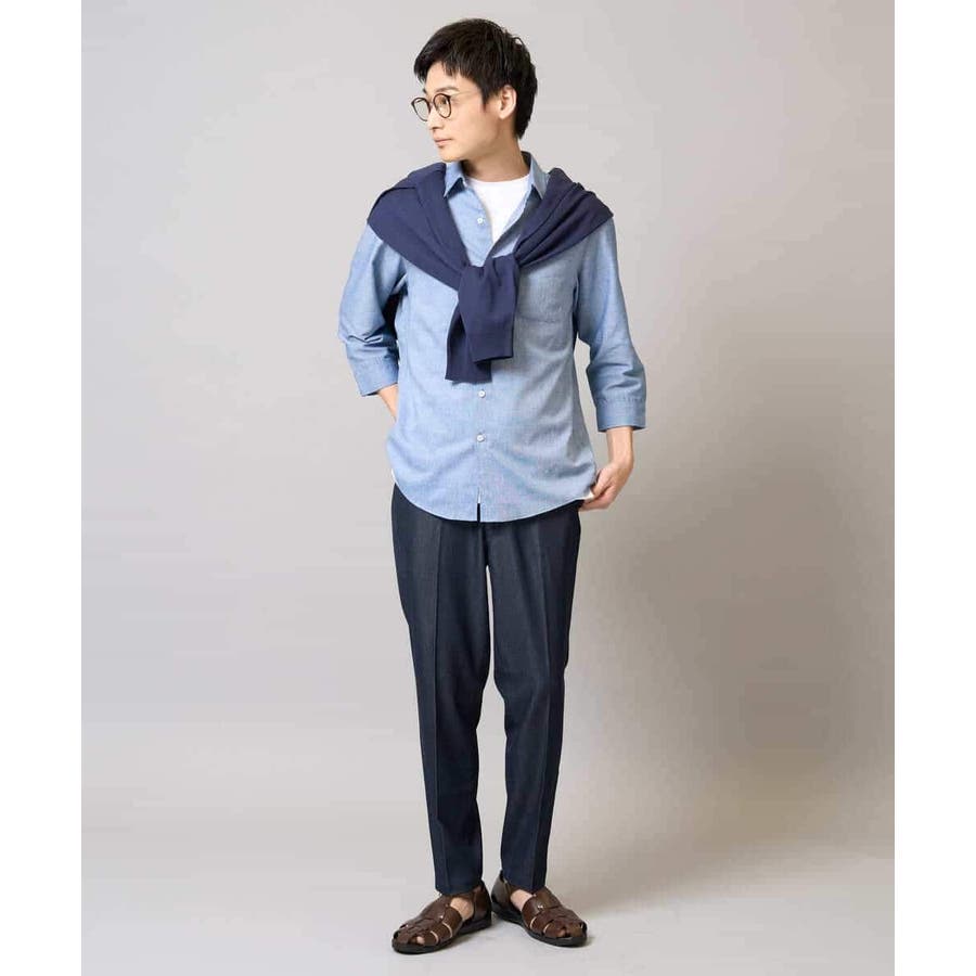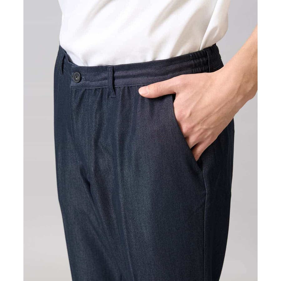 【イージーケア/接触冷感】スマートシャンブレーアンクル丈スラックス