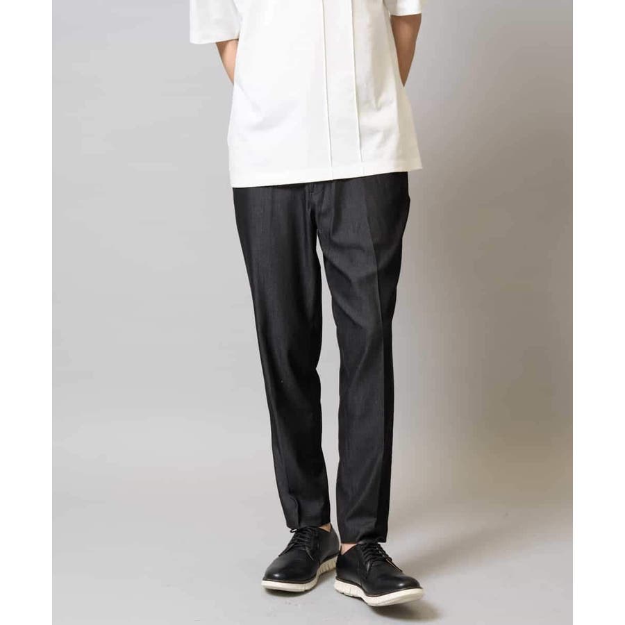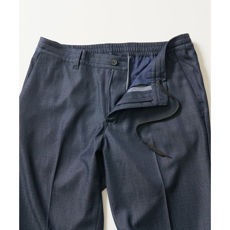 きれいめなシャンブレーストレッチ素材を使用した美脚見えするスマートスラックス◆