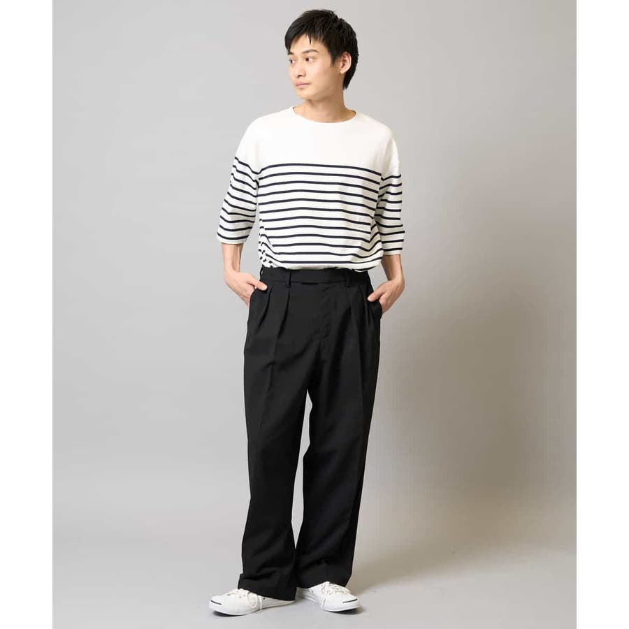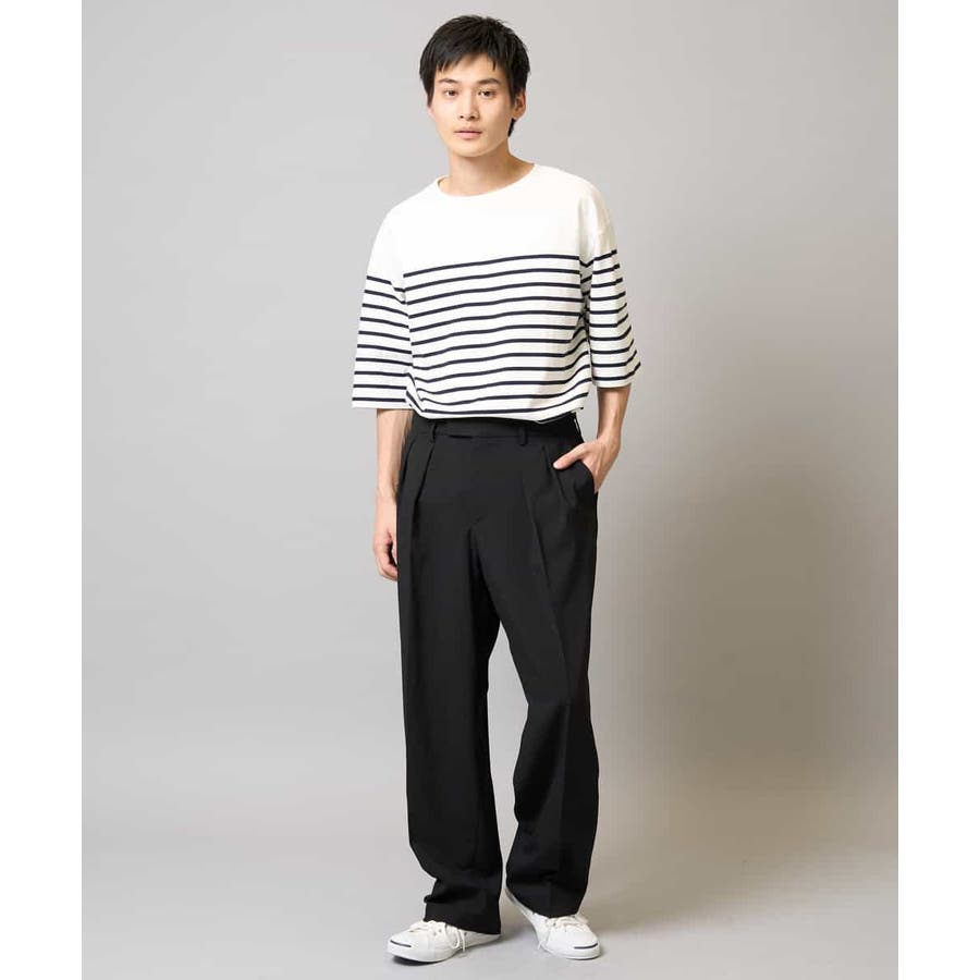デザインは2タック入りで腰回りにゆとりを持たせたボクシーなシルエット。