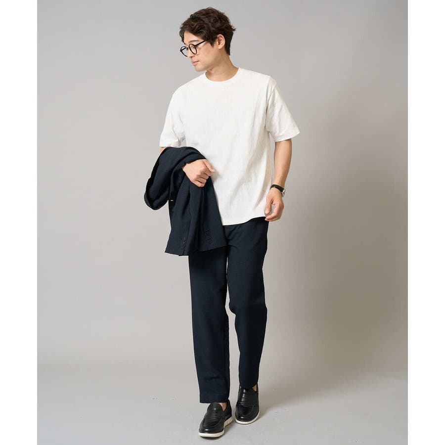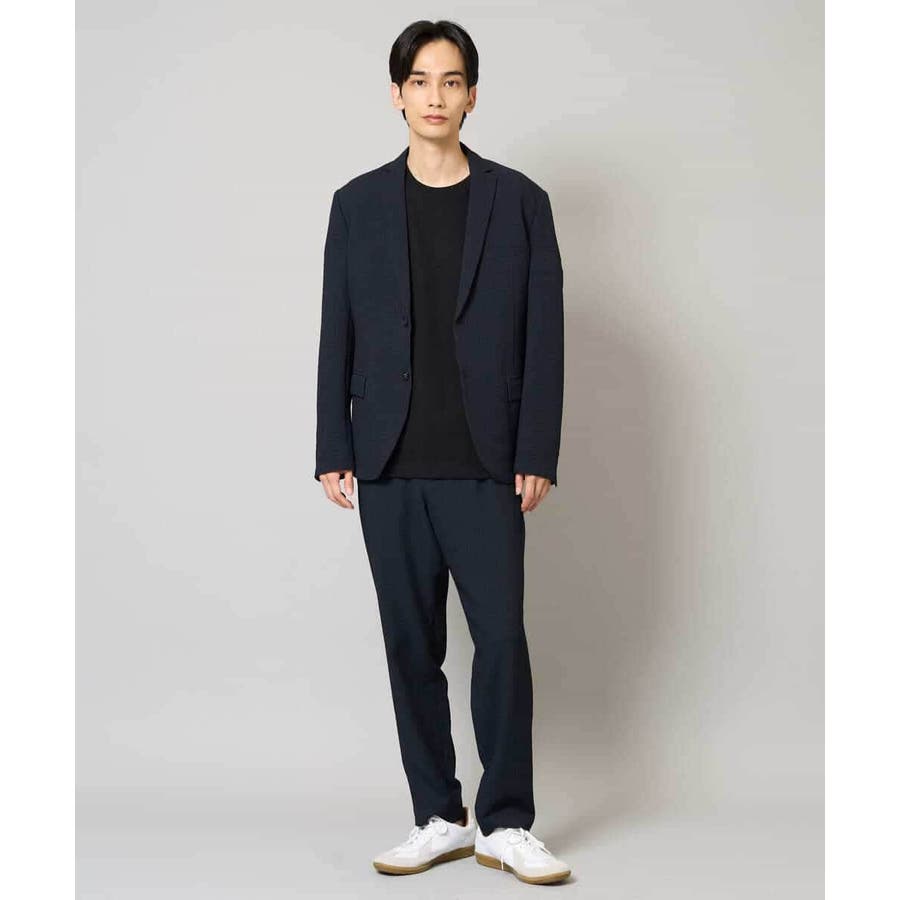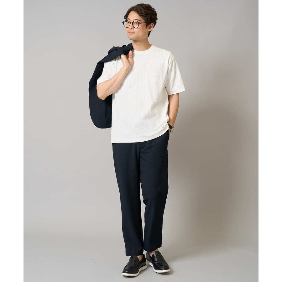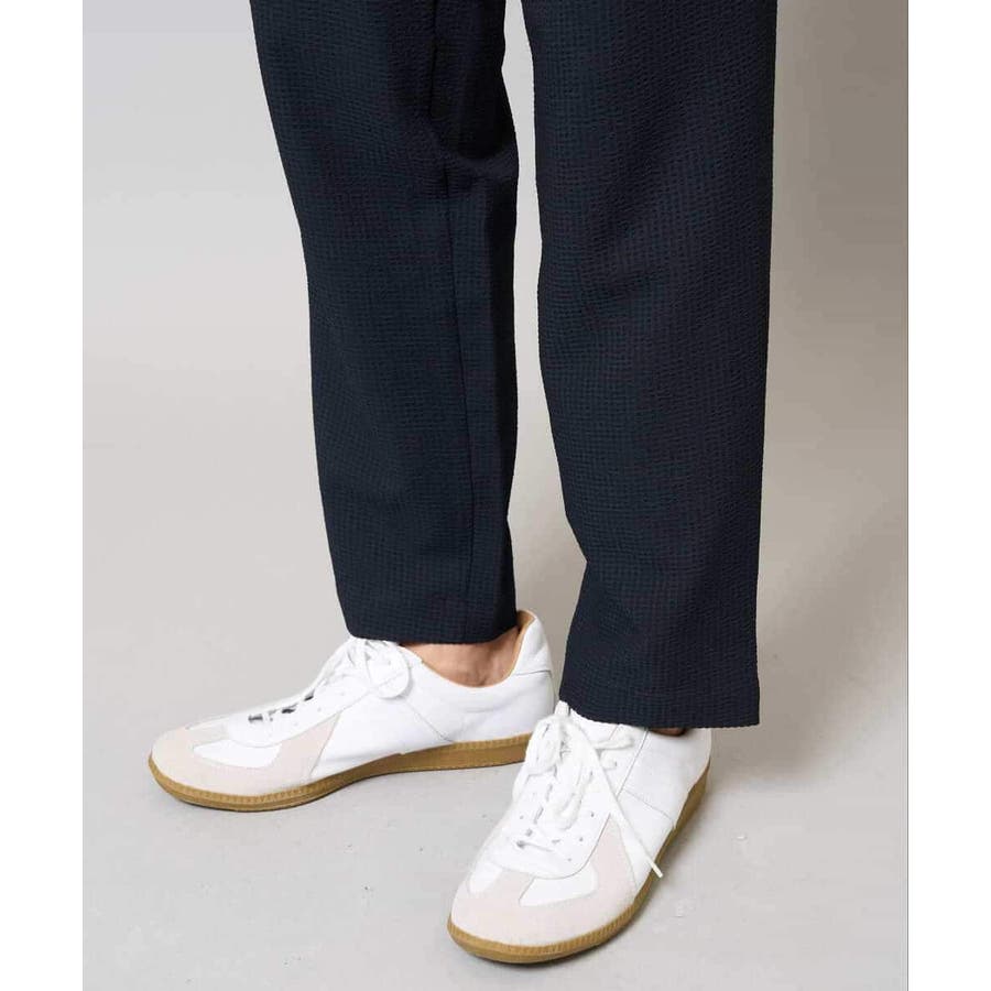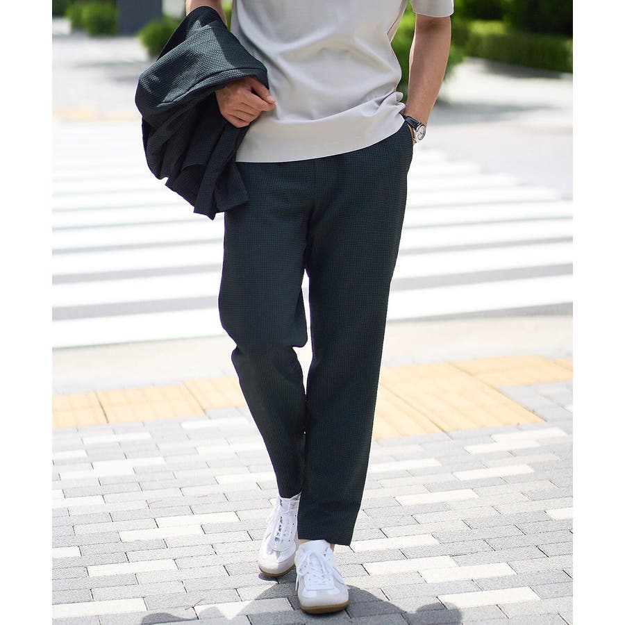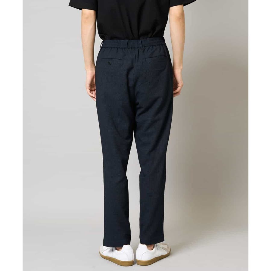 ストレッチの効いた薄手のシアサッカー素材を使用した、きれいめリラックスで大人見えするテーパードパンツ。