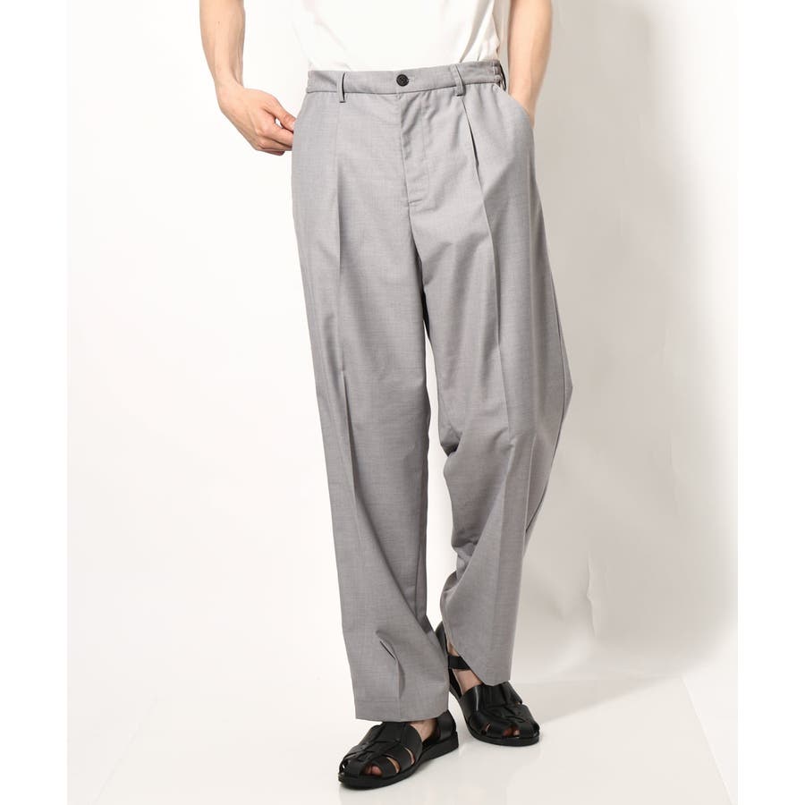 センタープレスがあり、きれいめな印象ながら、抜け感のあるリラックスしたワイド&ルーズな着こなしが楽しめる今季トレンドボトムです。