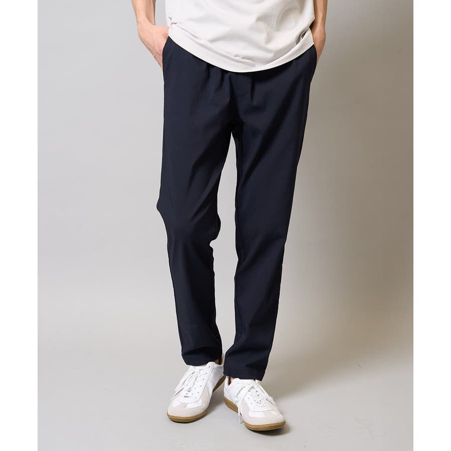 ◆【イージーケア/洗濯機で洗える/毛玉になりにくい/UVカット/接触冷感】ストレッチ性の高い素材を使用した見た目のシャープさと動きやすさを備えたジャストレングスイージーパンツ◆