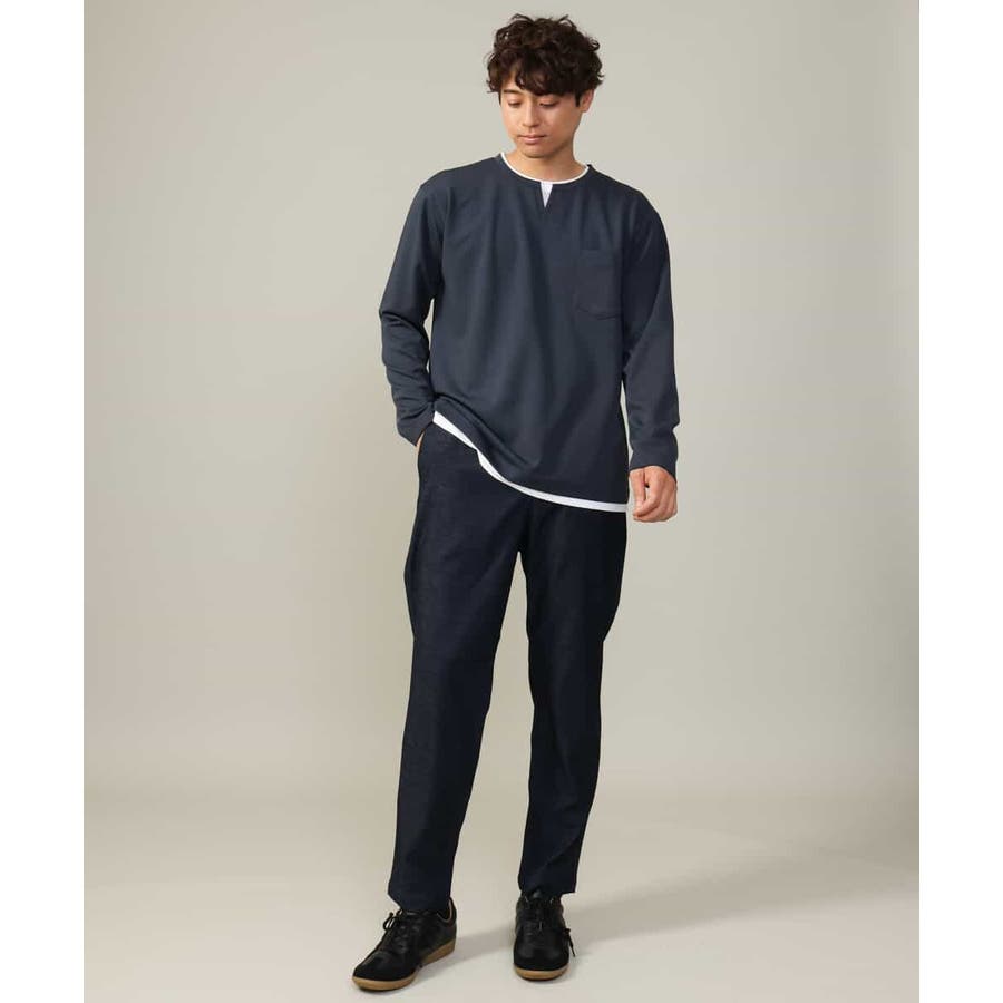 【ストレッチ】スマートシャンブレーテーパードパンツ